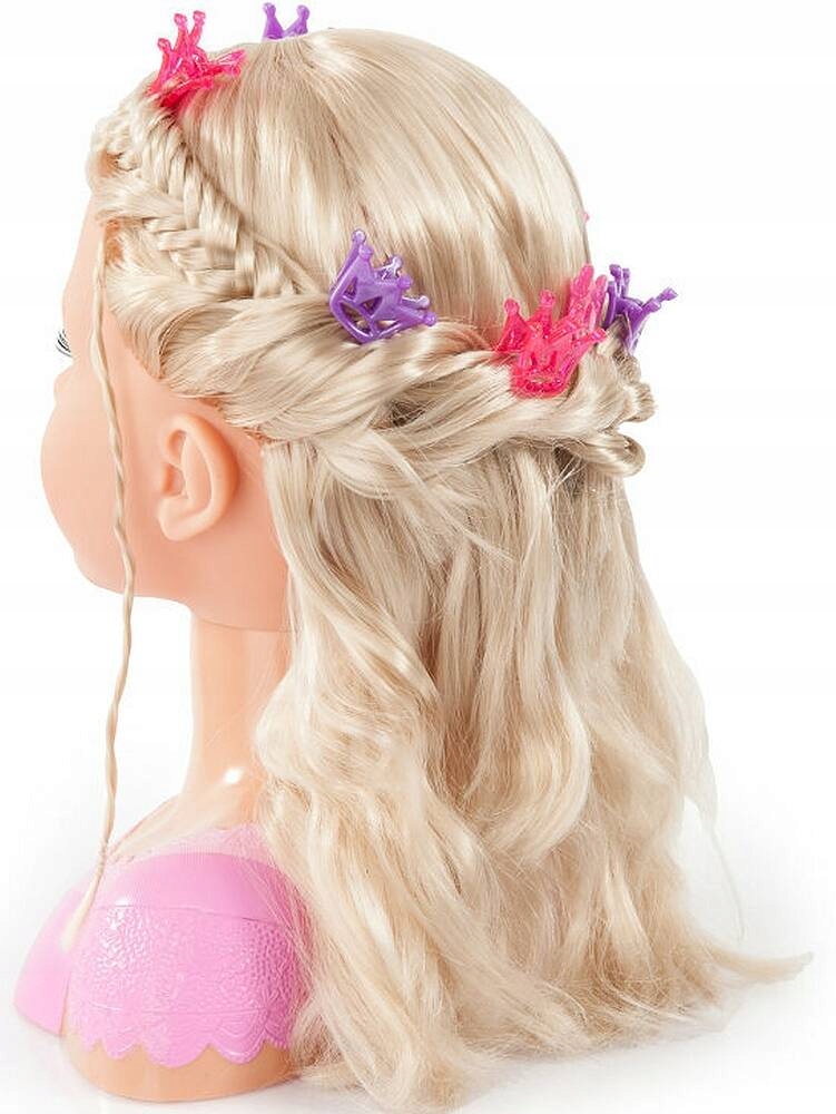 Подвижную головку для укладки можно использовать для создания самого потрясающего макияжа и причесок. С его помощью маленький парикмахер может сколько угодно тренироваться в расчесывании, креплении заколок, заплетении хвостов, кос, заколках и моделировании волос.