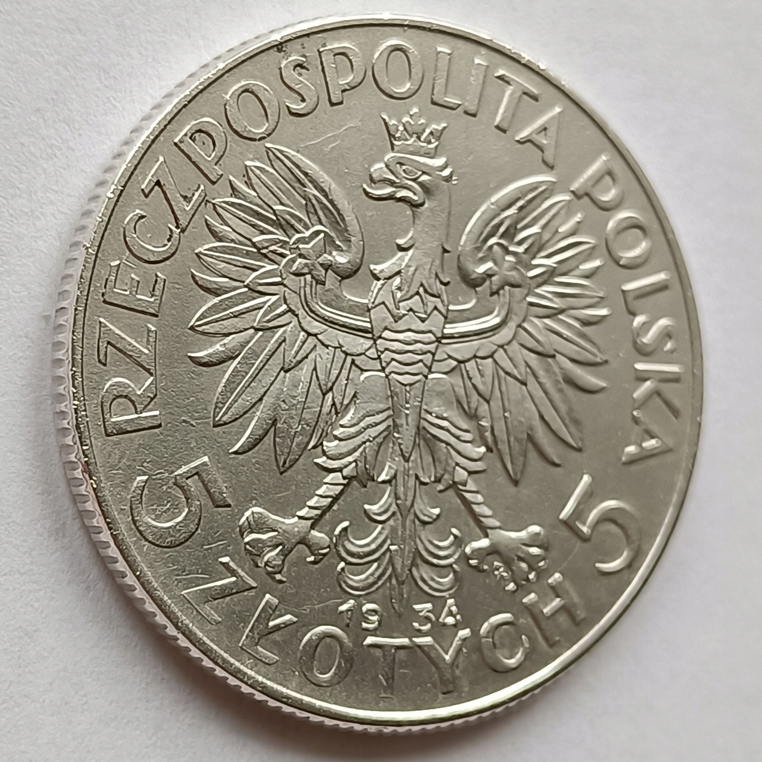 Глава женщины 5 Золото 1934 Серебряный AG - II RP - прекрасное состояние и блеск [019]