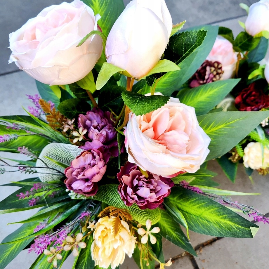 глава кладбища. Композиция гробницы с вставкой. Розы хризантема h1> Tombstone: композиция + вставка вазы - фиолетовый и крем в элегантном издании h2>