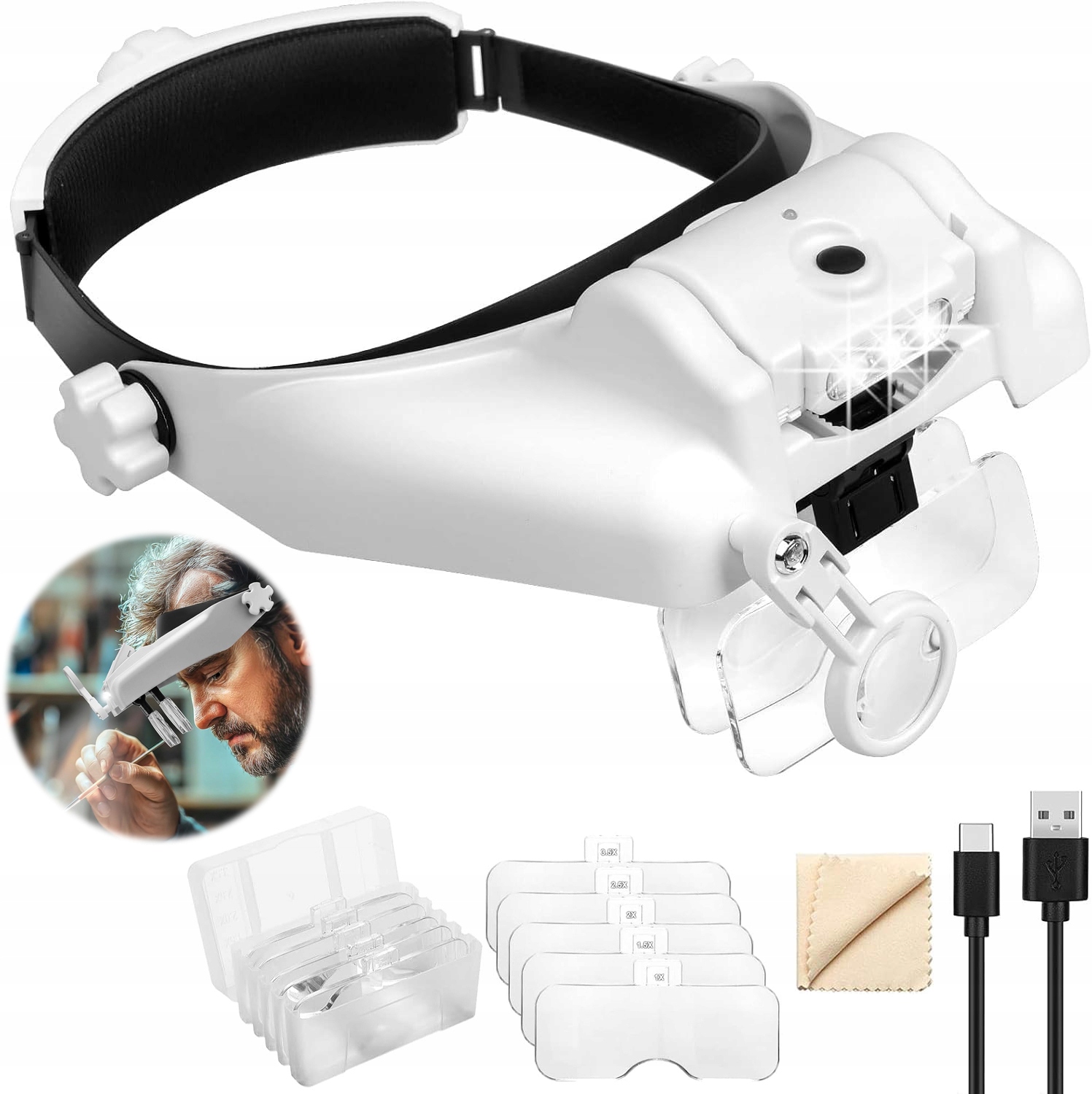Этот увеличительный свет головы, поданный без использования рук, имеет два гнезда объектива и фиксированную переднюю линзу с увеличением 8x, что позволяет одновременно использовать один или оба объектива. Наш продукт содержит пять сменных линз (1x, 1,5x, 2x, 2,5x и 3,5x) и дополнительную 8 -кратную линзу, что обеспечивает широкий диапазон увеличений.