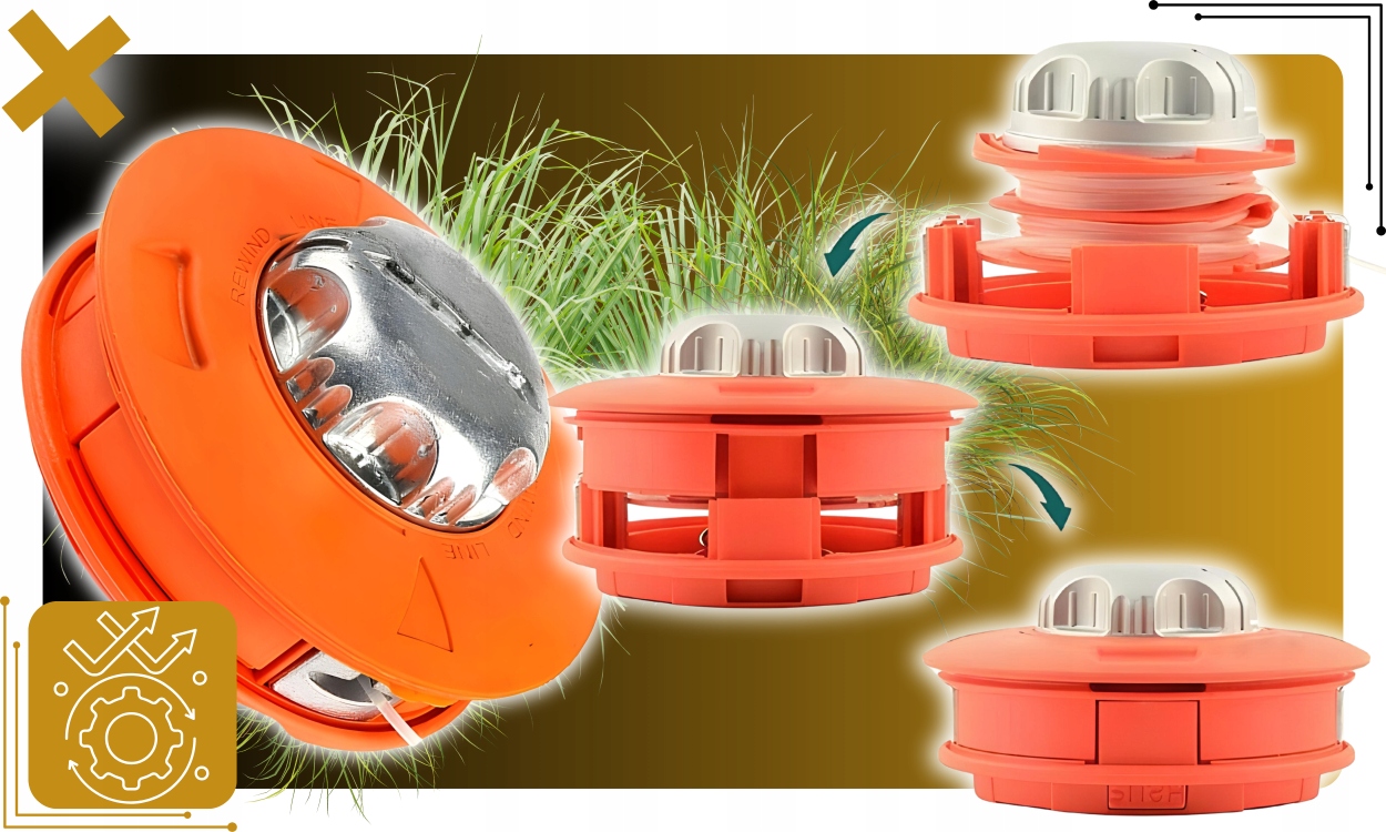 Изготовлен из прочного АБС-пластика и алюминия обеспечивает надежность и долговечность. Подходит для большинства бензиновых газонокосилок, а простая загрузка лески занимает всего несколько секунд.