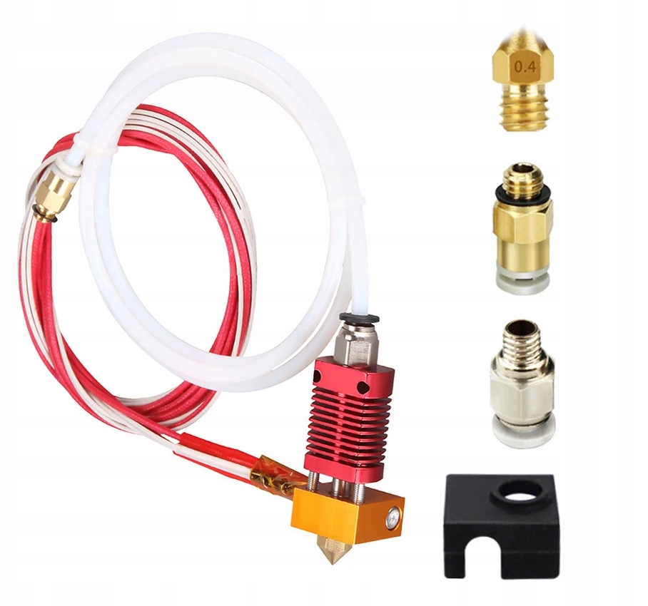 ⭐ В комплект входит полноценная головка с тефлоновой трубкой (длиной около 1 м), нагревателем и термистором, для использования во многих различных принтерах, в которых производитель использовал головки системы Ender 3.
