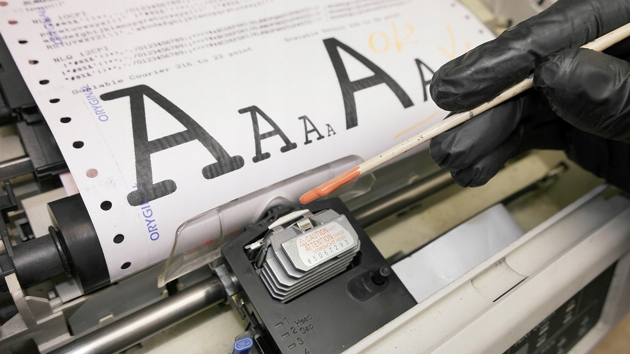 За 25 лет работы с принтерами OKI мы отточили технику. Головку также проверяют на сопротивление и «усталость иглы».