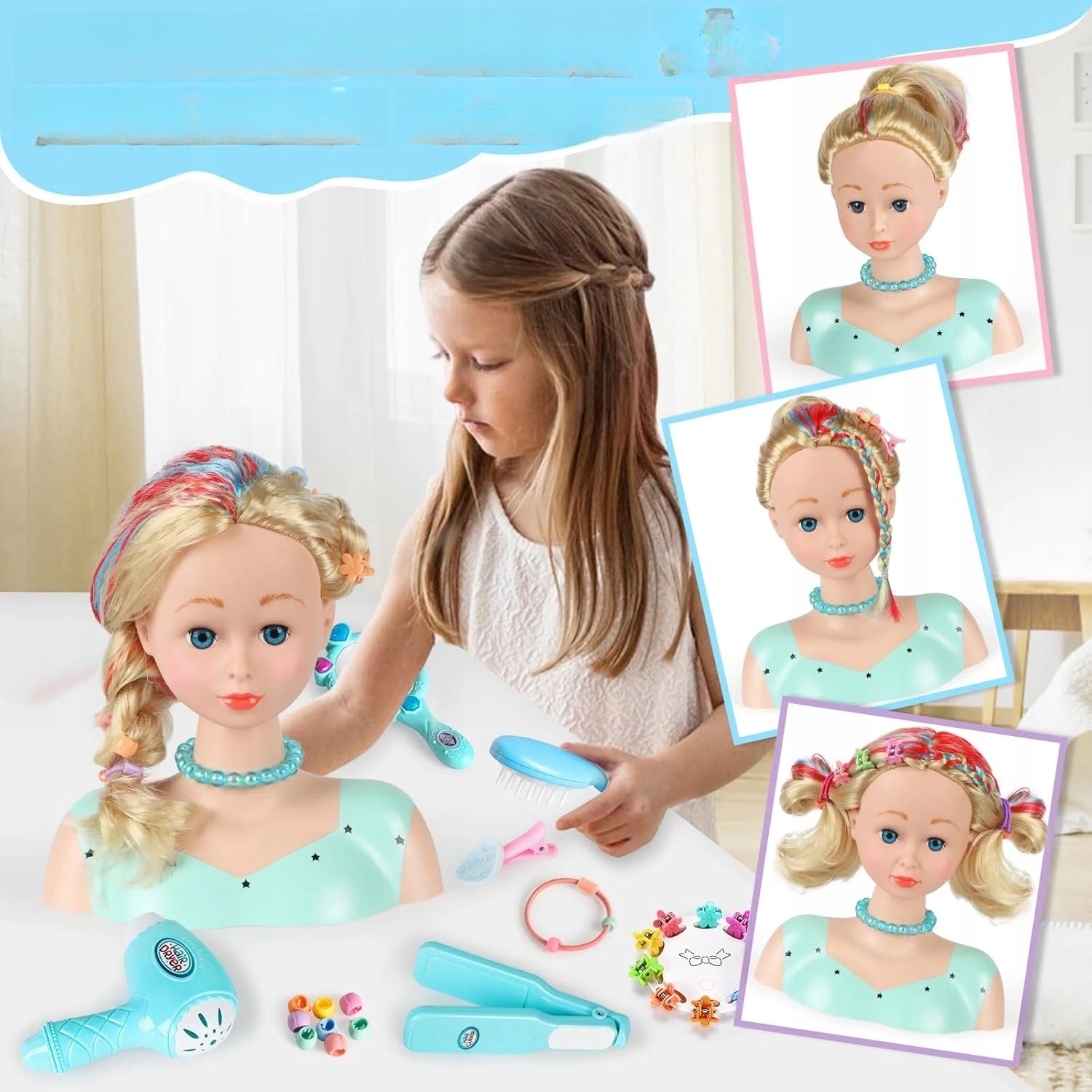 Головка для укладки и макияжа детская, парикмахерский и косметический набор