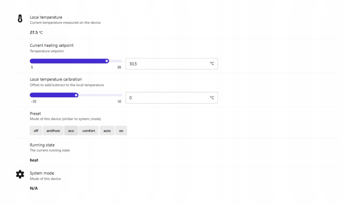 Все режимы могут быть частью еженедельного расписания или управляться автоматически как часть сцен и автоматизации ZigBee, например. в сочетании с датчиком движения или датчиком открытия окна.