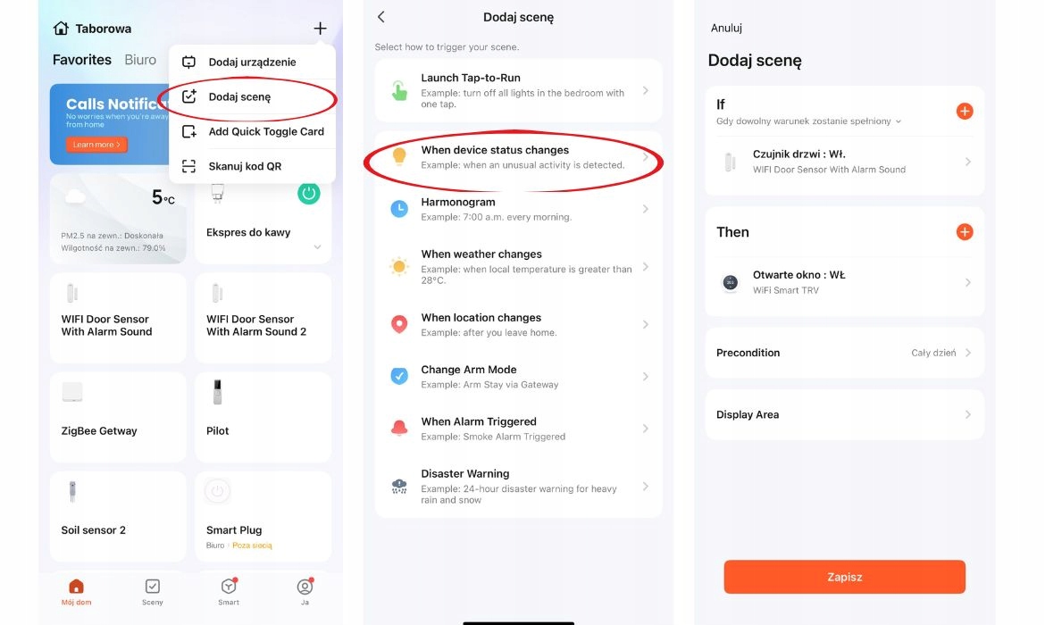 - Приложение работает в Польский, в нем вы можете добавлять и управлять различными интеллектуальными устройствами.