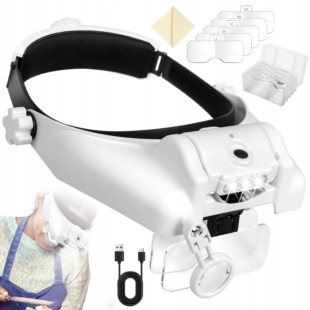 УВЕЛИЧЕНИЕ НА ГОЛОВЕ С ПОДСВЕТКОЙ, СМЕННЫЕ ЛИНЗЫ + 6 ЛИНЗ