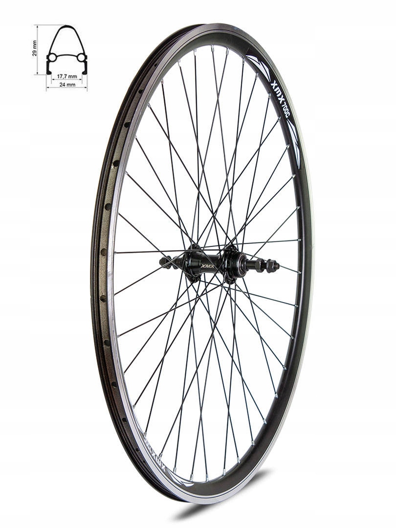 Заднее колесо, 28-дюймовый черный конусный обод — ступица свободного хода, картриджные подшипники — гайки XMX