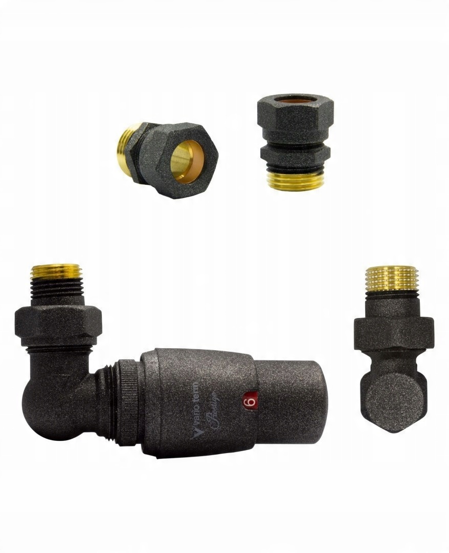 Главный трехосный термостатический клапан, темный структурный графит, левая медь