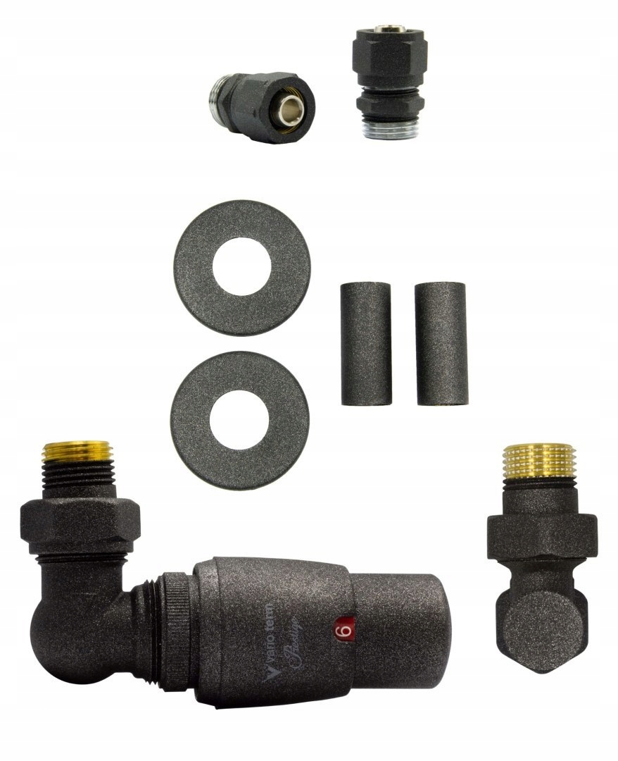 Клапан термостатический трехосный Master, темный структурный графит, левый Pex All in One