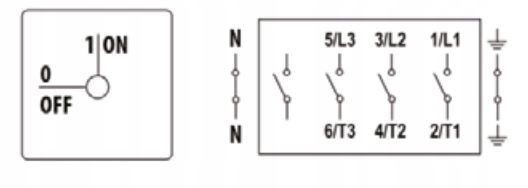 AS 32A 4P представляет собой сервисный переключатель кулачкового типа с углом поворота 90°. Его маркировка четко указывает на его положение, а дополнительная блокировка в положении ВЫКЛ защищает от незапланированного включения.