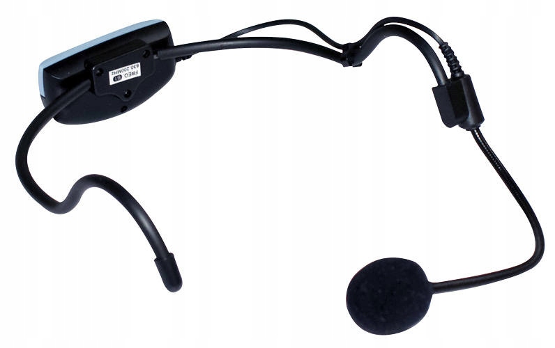 Микрофон размещен на гибком кронштейне, поэтому вы можете легко установить подходящее расстояние или наклон. Сам передатчик, расположенный на задней стороне ремешка микрофона (ободке), легкий и не мешает носить все устройство на голове. В комплект вместе с микрофоном входит база — ресивер с регулировкой громкости и двумя автовыходами.