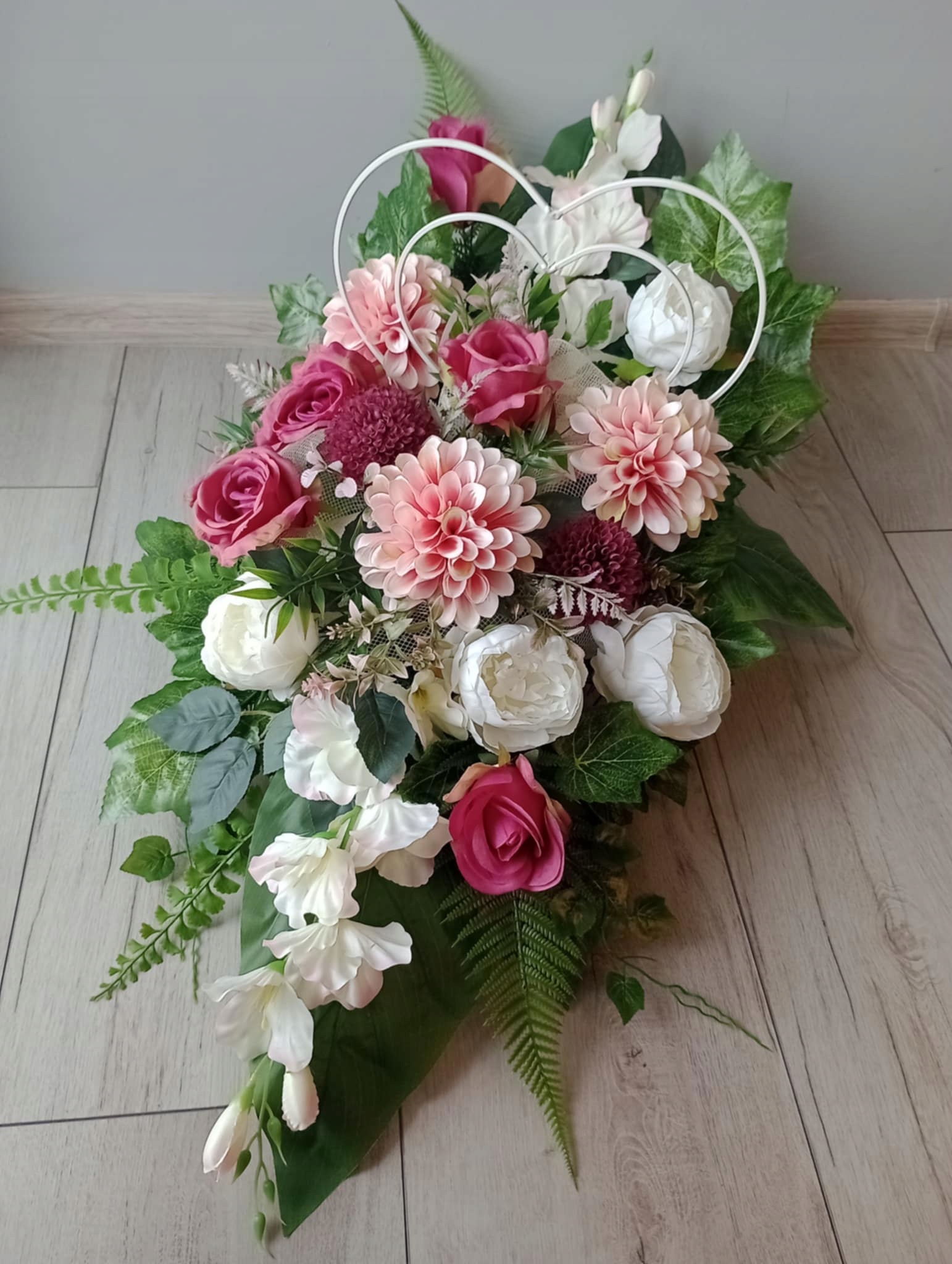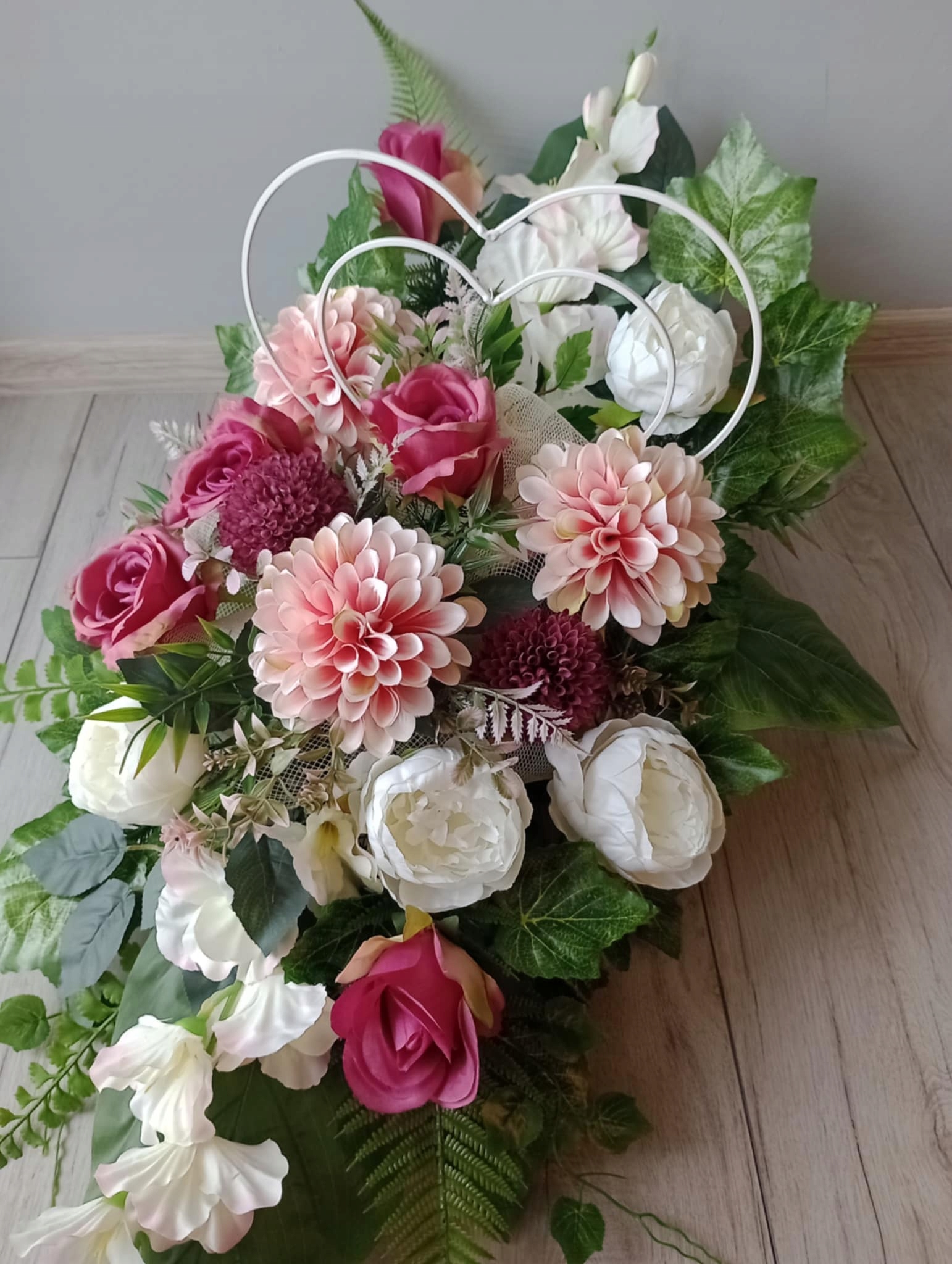 Красивые цветы для могилы из искусственных цветов, композиция для альбома с сердцем. Мы сами делаем свои композиции, благодаря тому, что тростники уникальны, и они выглядят еще красивее вживую :) Тщательно отобранные цветы чрезвычайно реалистичны, добавляя кучу подлинности и подчеркивая его торжественный характер. Этот продукт идеально подходит в качестве элемента могильной украшения, сочетающей уважение и элегантность в одном тщательно изготовленном дизайне.