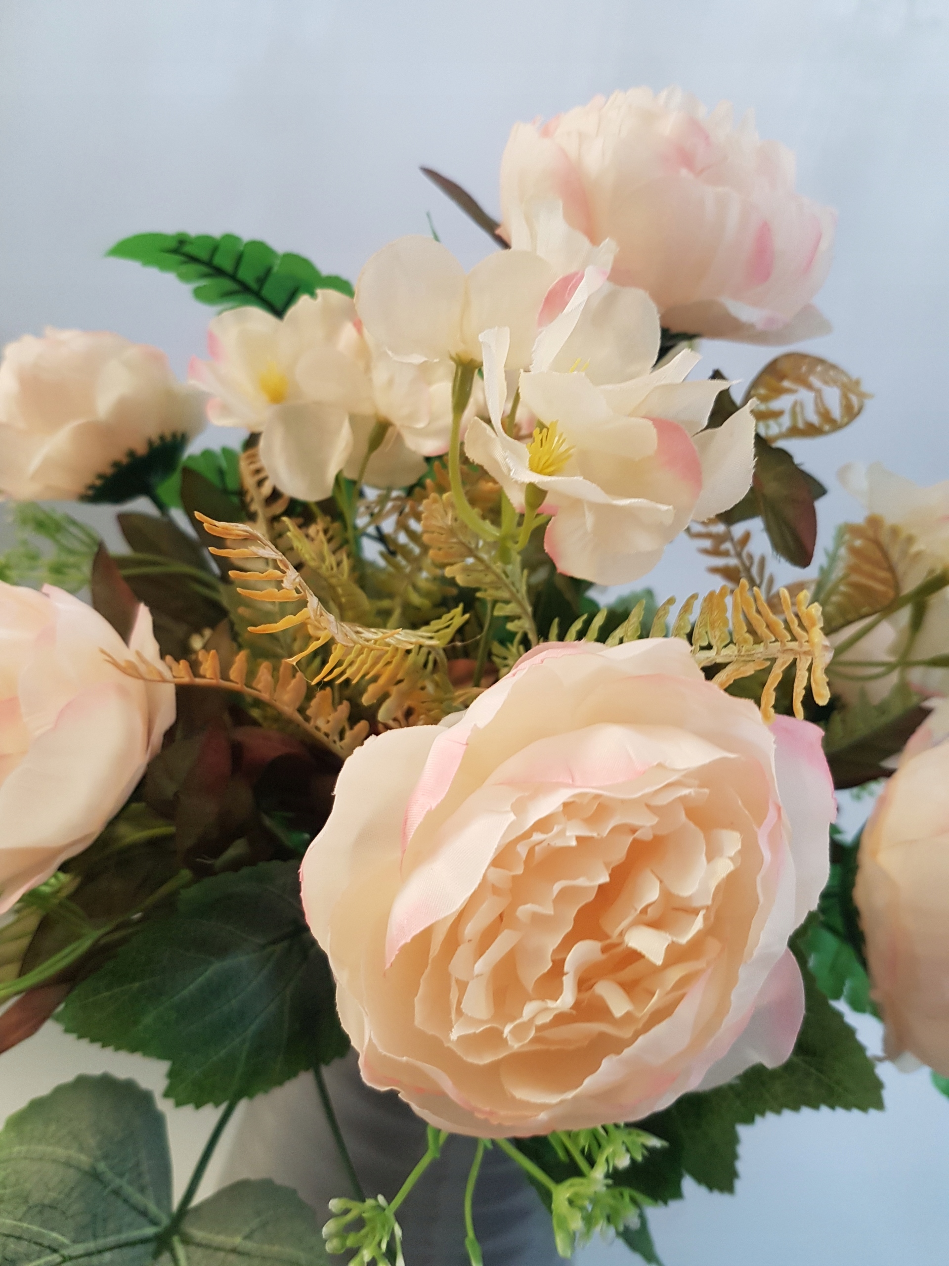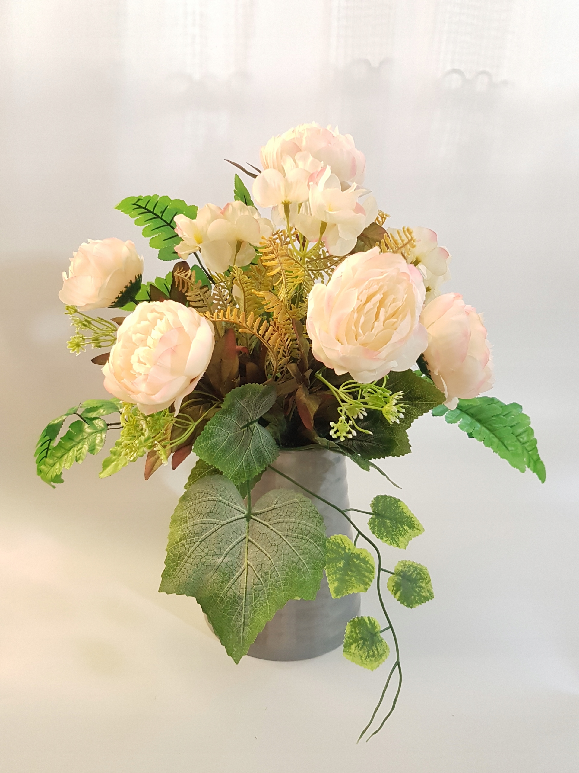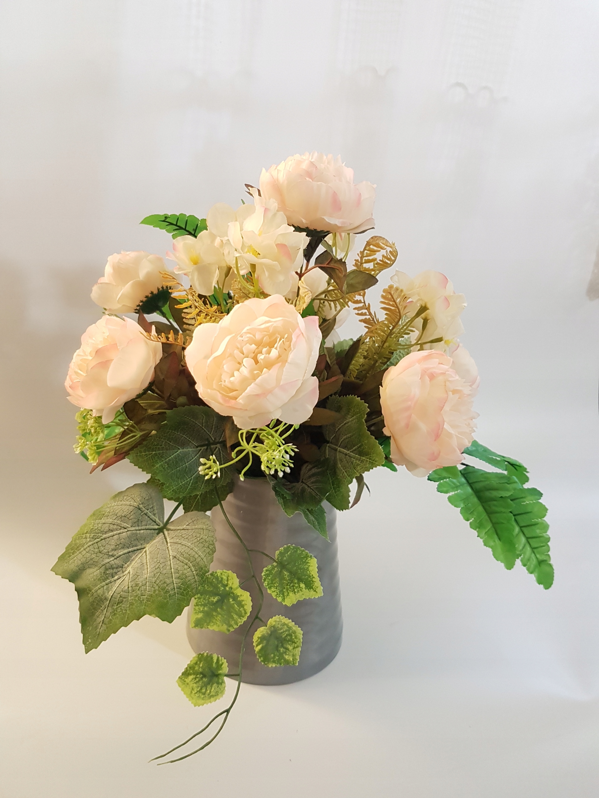 - все выполнено из качественных искусственных цветов из ткани - пион, гортензия,