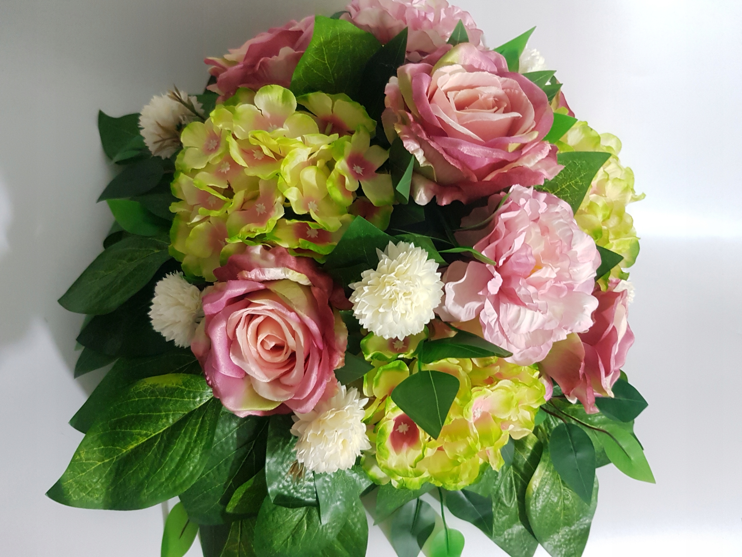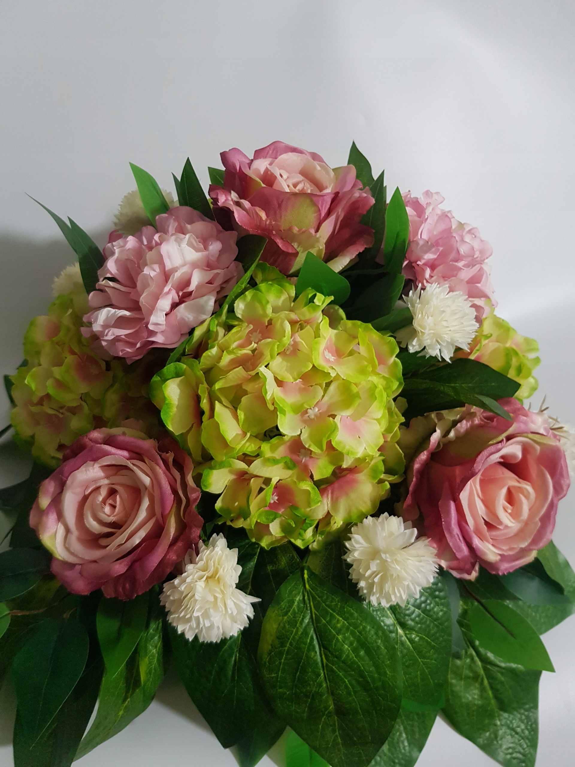 - все выполнено из качественных искусственных цветов из ткани - роза, георгин, гортензия , чертополох, различные виды листьев,