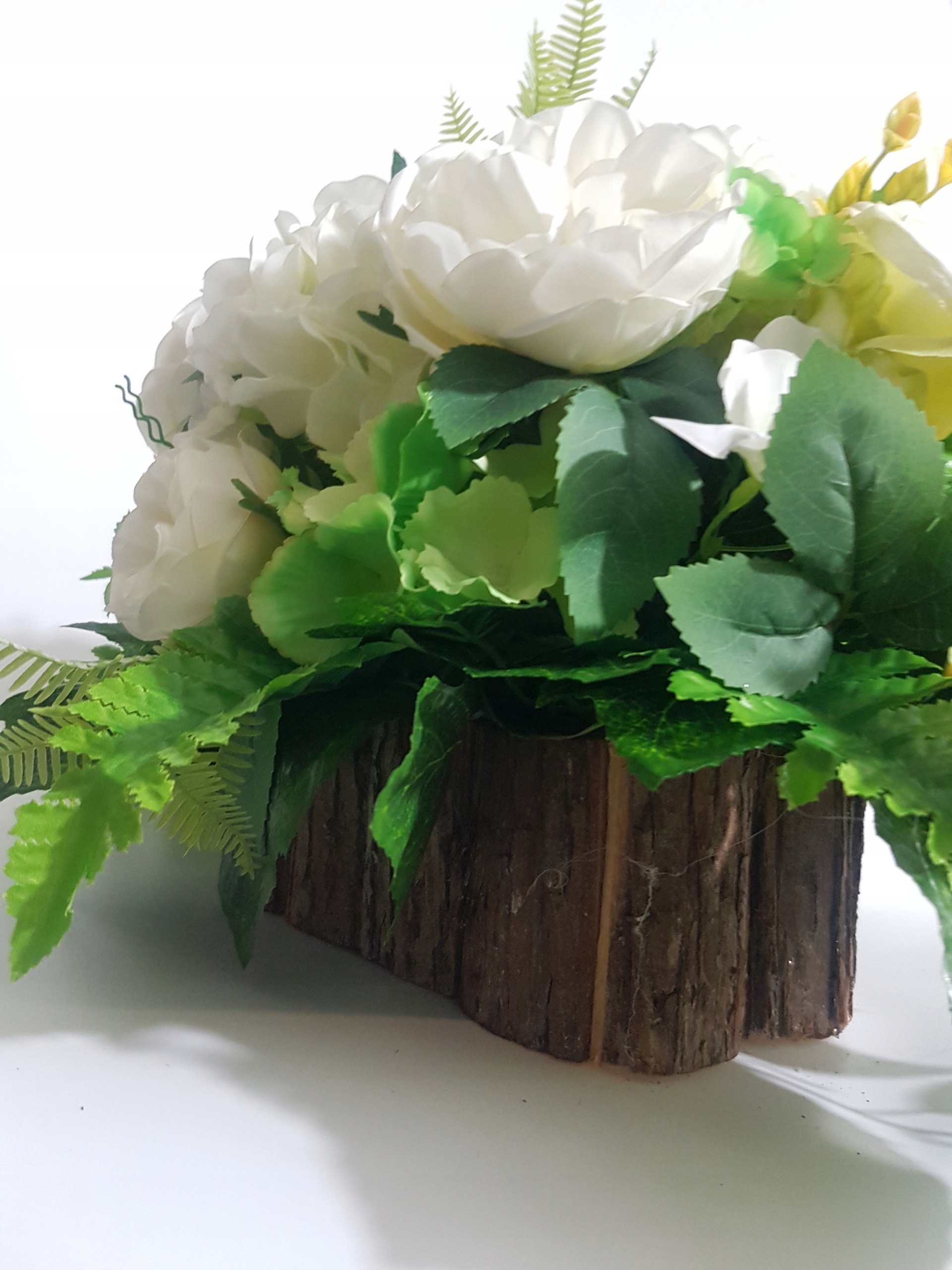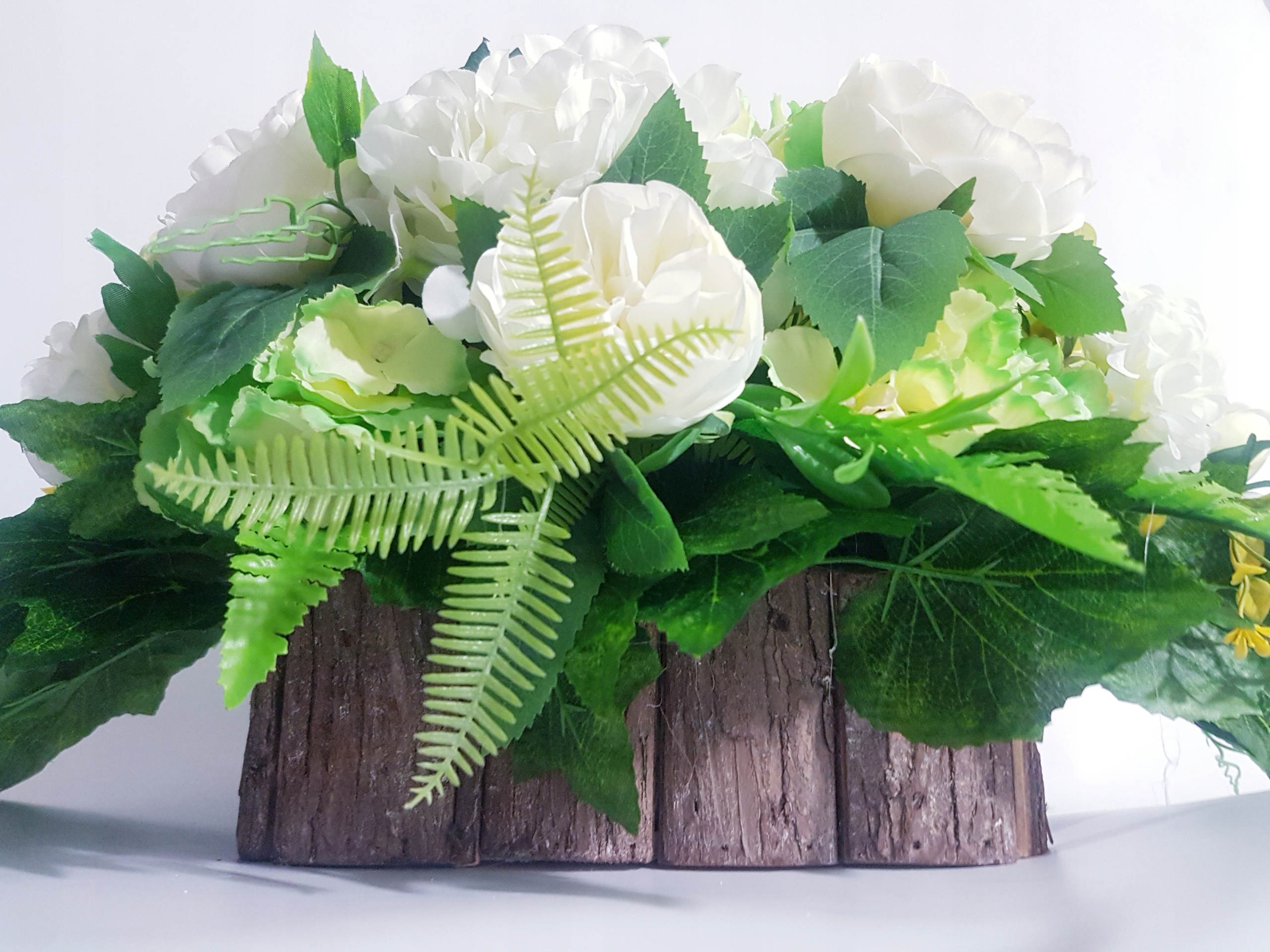 Предмет продажи - могильное украшение, кладбище с цветами в деревянном горшке,