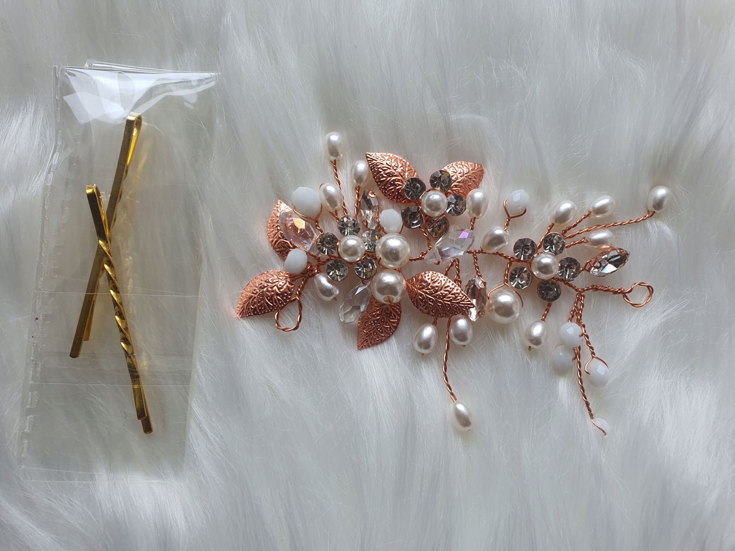 Свадебный ободок ок. Размер: 10 см; Цвет: РОЗОВОЕ ЗОЛОТО.