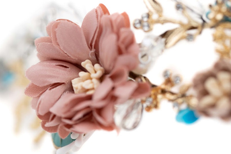 ГОЛОВНИЙ ВІНОК ЕЛЕГАНТНІ КВІТИ КОЛЬОРВИТИЙ ДЕКОРАЦІЯ БЛАКИТНО-РОЖЕВОЇ СЕСІЇ