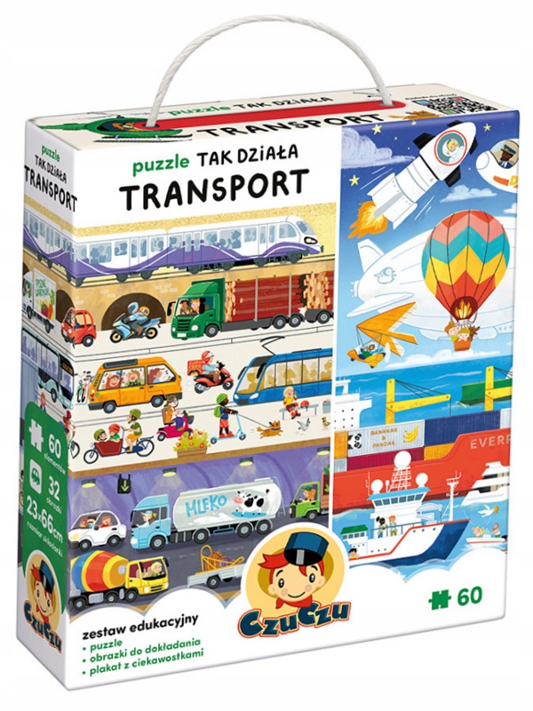 Органируйте головоломки и посмотрите, что лето, плавает и едет! Большая, красочная головоломка состоит из 60 элементов и представляет различные транспортные средства, которые транспортируют пассажиров и товары. Вы знаете их всех? Вы можете найти множество купорок о транспорте на плакате, прикрепленном к головоломке, и 32 картины с элементами для поиска на иллюстрации позволили бы вам получить еще более творческое веселье. Набор - отличная идея для образовательного подарка для интересного мира дошкольников, и особенно поклонников функции темы: во многих отношениях позволяет творческо.
