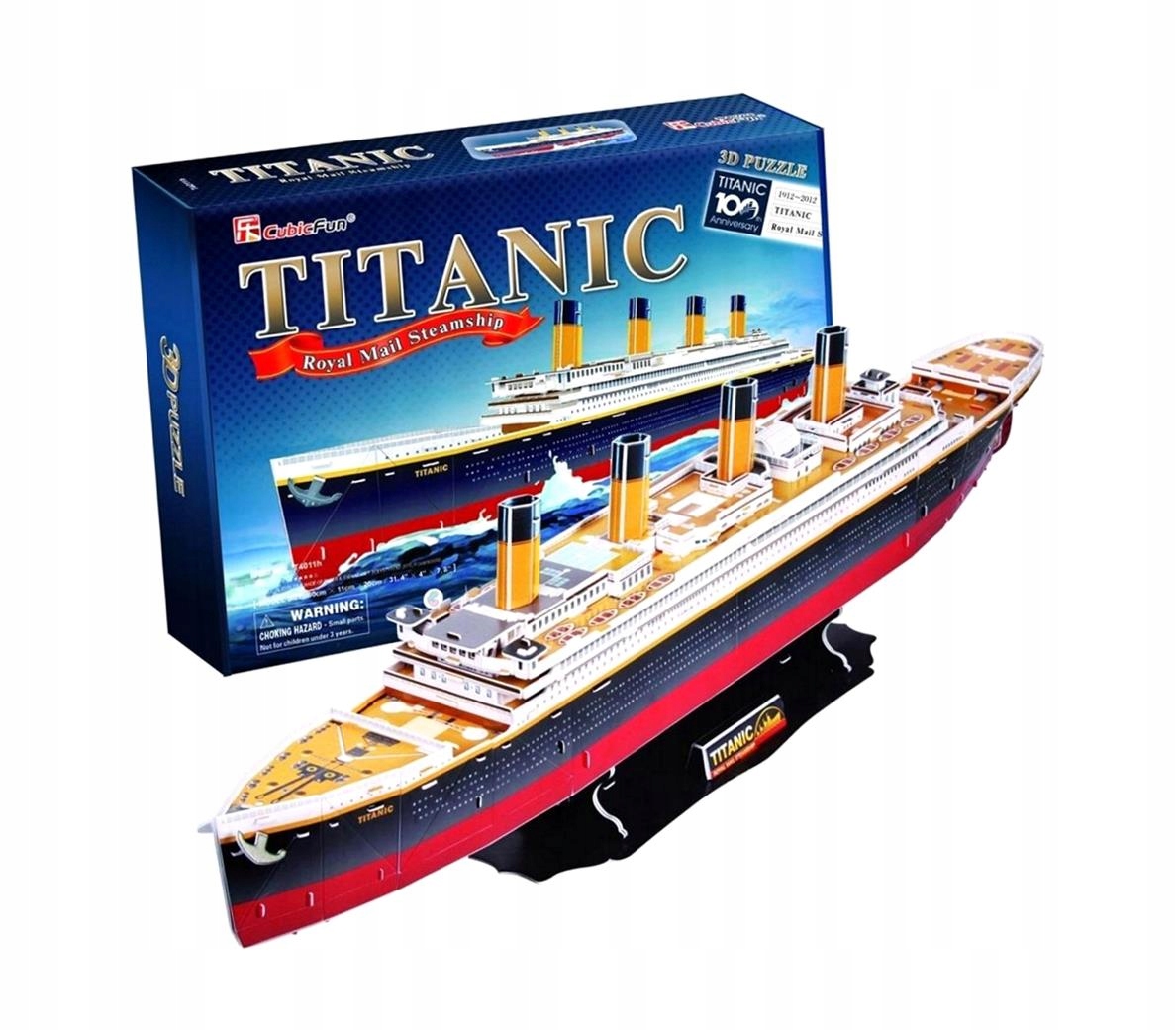 Титаник — это 3D-модель-головоломка. Корабль состоит из 113 элементов и в собранном виде имеет размеры 80 х 11 х 20 см. Для сборки не требуется клей, ножницы или другие специальные инструменты. Все пазлы пронумерованы и оценены, а способ их сборки показан в инструкции. После сборки пазлы имеют высокую образовательную ценность и отлично смотрятся в качестве дополнения.