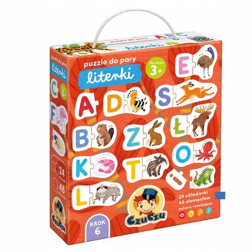 головоломка для пары букв - фантастический образовательный набор для интересного мира дошкольников. Он состоит из 24 больших 2-элементных головоломок. Чтобы правильно их соответствовать, вам нужно знать буквы и соответствующие звуки. Благодаря этому веселье превращается в образовательное приключение! Загадка присоединилась к руководству, полному идей для творческих игр, это лишь некоторые из них: