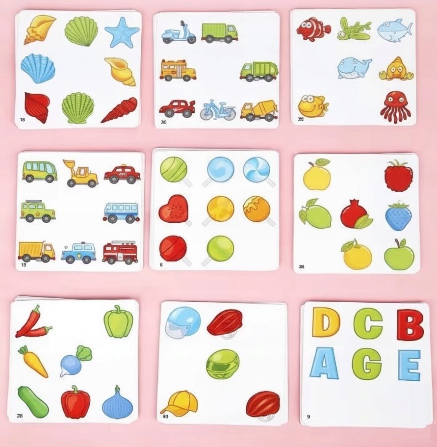 Карты красочные и разнообразные - от сладостей, фруктов, транспортных средств до морских животных.