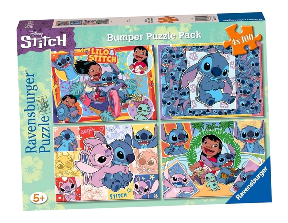 головоломка 4x100 Элементы Ravensburger представляют собой набор из 4 головоломок (100 элементов), показывающих Disney Stitch.
