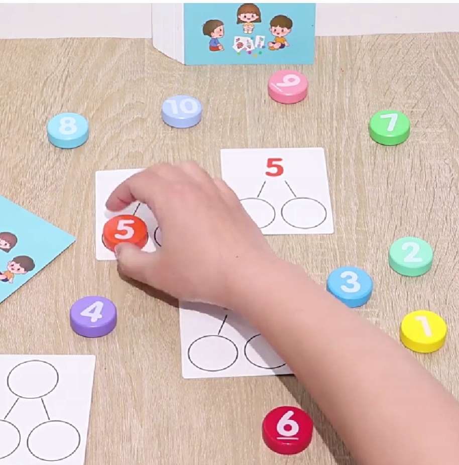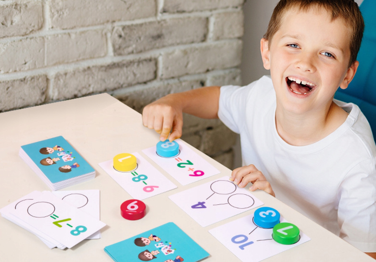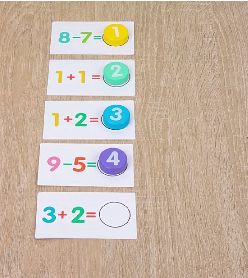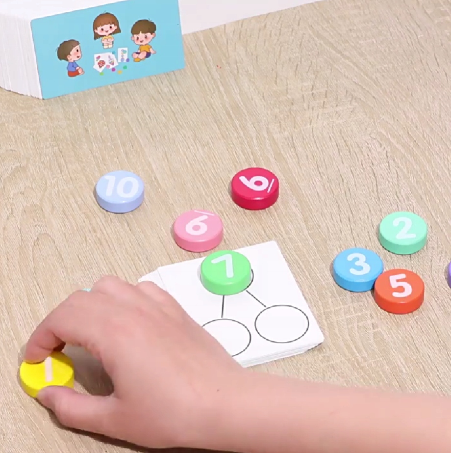 В набор входят красочные карточки и деревянные диски с цифрами, благодаря которым ребенок может самостоятельно решать простые математические действия. и развивать навыки логического мышления.
