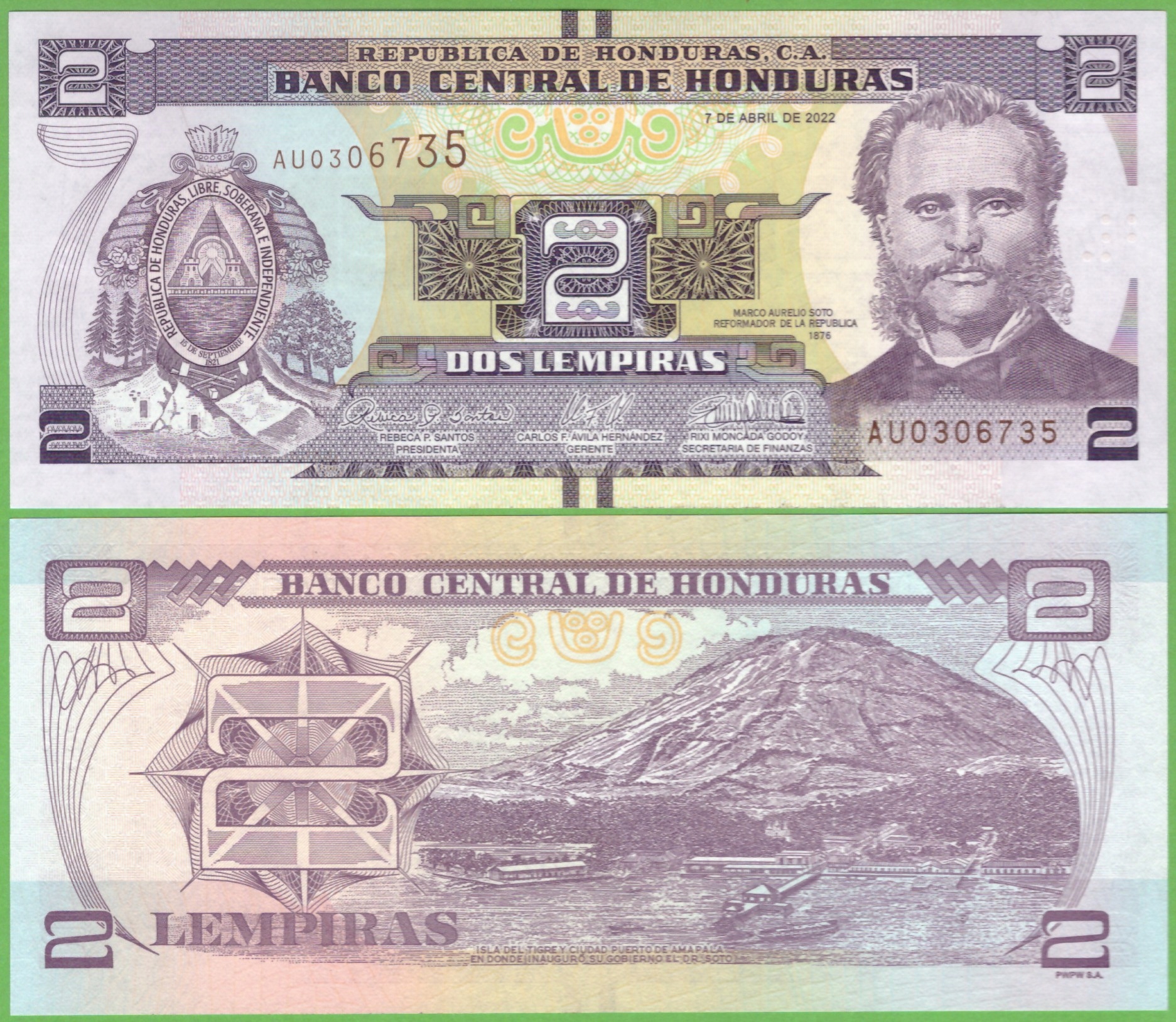 ГОНДУРАС 2 ЛЕМПИРАСА 2022 P-97 UNC НОВАЯ ДАТА И ПОДПИСИ