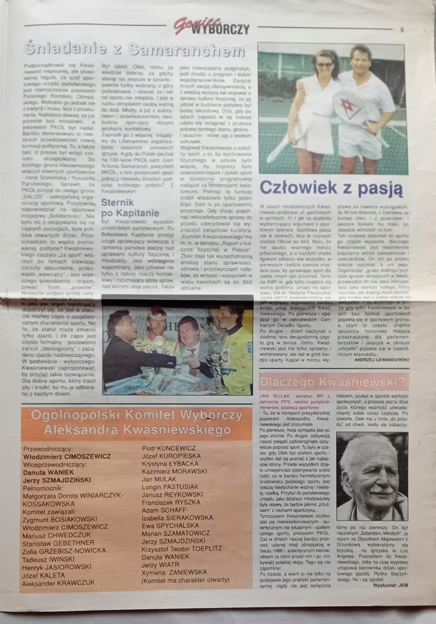 Гонец Выборчи - рекламный буклет Александра Квасьневского, 1995 г.