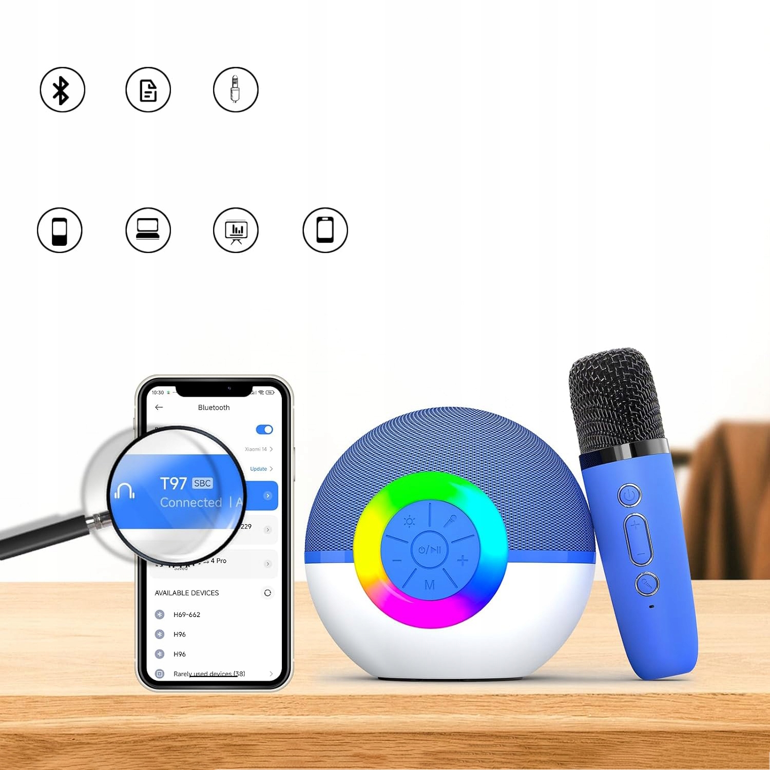 GŁOŚNIK BLUETOOTH ZESTAW KARAOKE LAMPKA RGB + DWA MIKROFONY BEZPRZEWODOWY