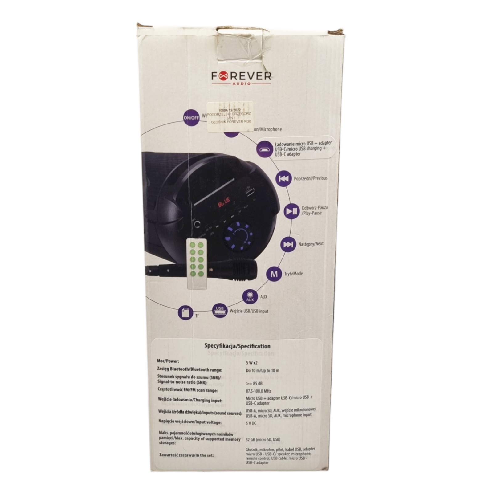 Просматривая «GŁOŚNIK FOREVER RGB + MIKROFON», вы можете быть уверены, что данный товар из каталога «[rubrica_name]» будет доставлен из Польши и проверен на целостность. В цене товара, указанной на сайте, учтена доставка из Польши. Внимание!!! Товары для Евросоюза, согласно законодательству стран Евросоюза, могут отличаться упаковкой или наполнением.