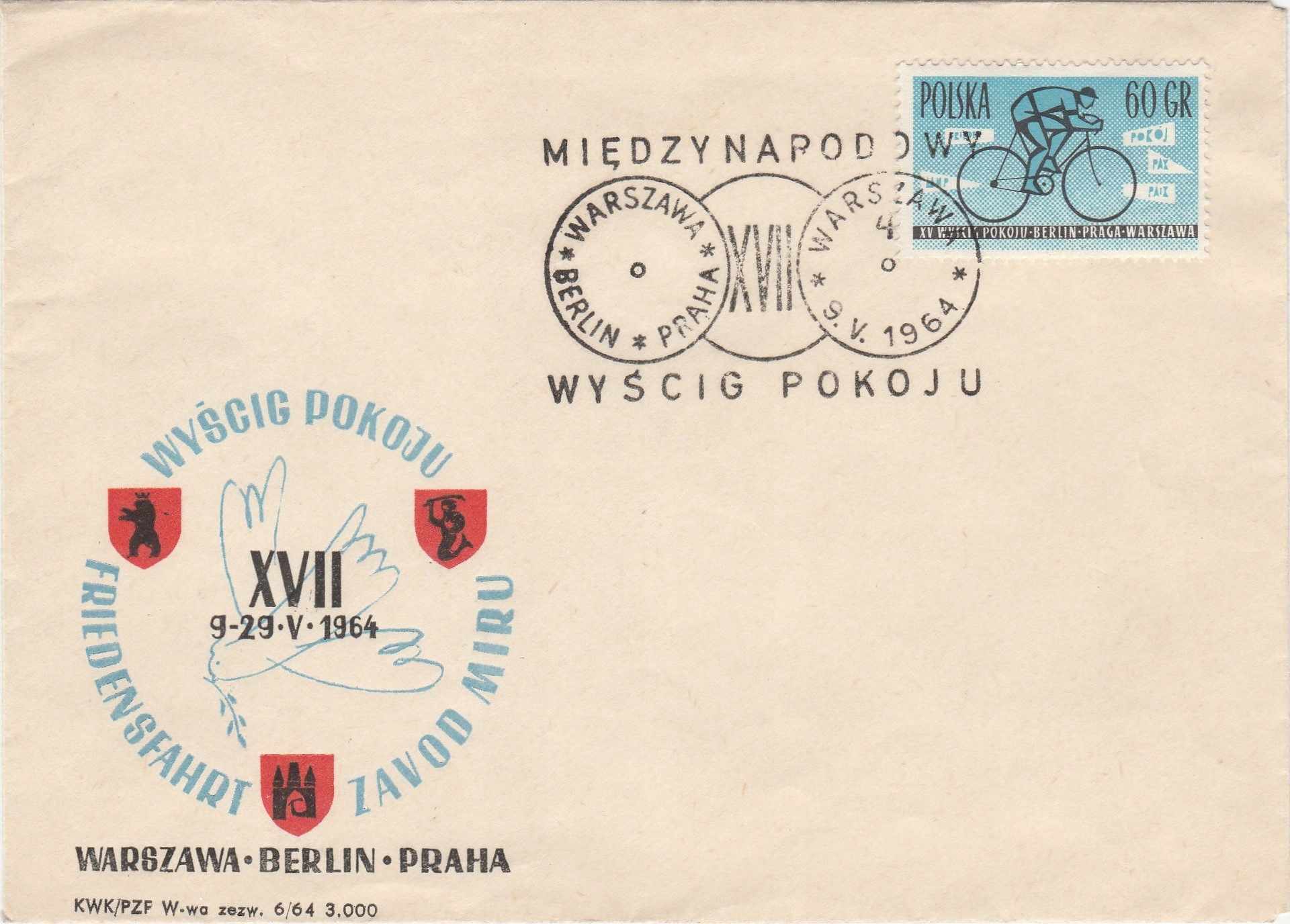 Гонка мира 1964 г. - 5 памятных марок
