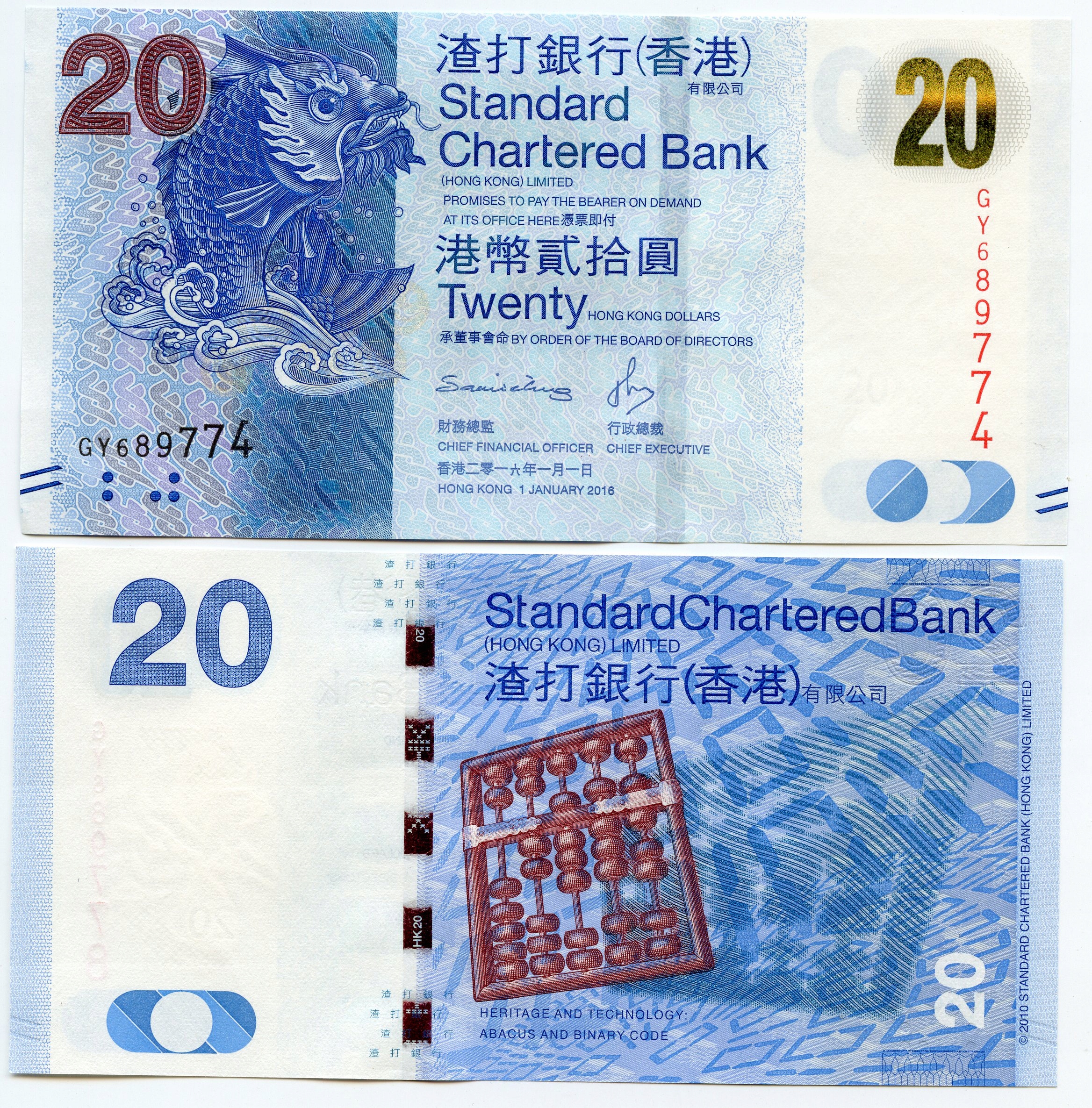 ГОНКОНГ 20 ДОЛАРІВ 2016 01.01 P-297e UNC СТАНДАРТ ШАРТЕРЕД БАНК