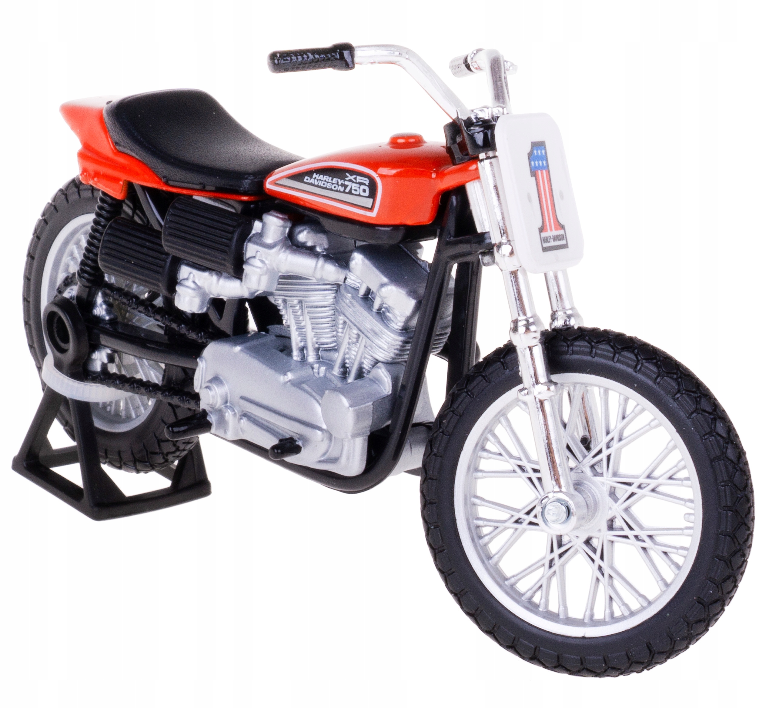 Модель гоночного мотоцикла Harley-Davidson XR750 1972 года выпуска, лицензированного брендом Harley-Davidson компанией MAISTO, в масштабе 1:18.