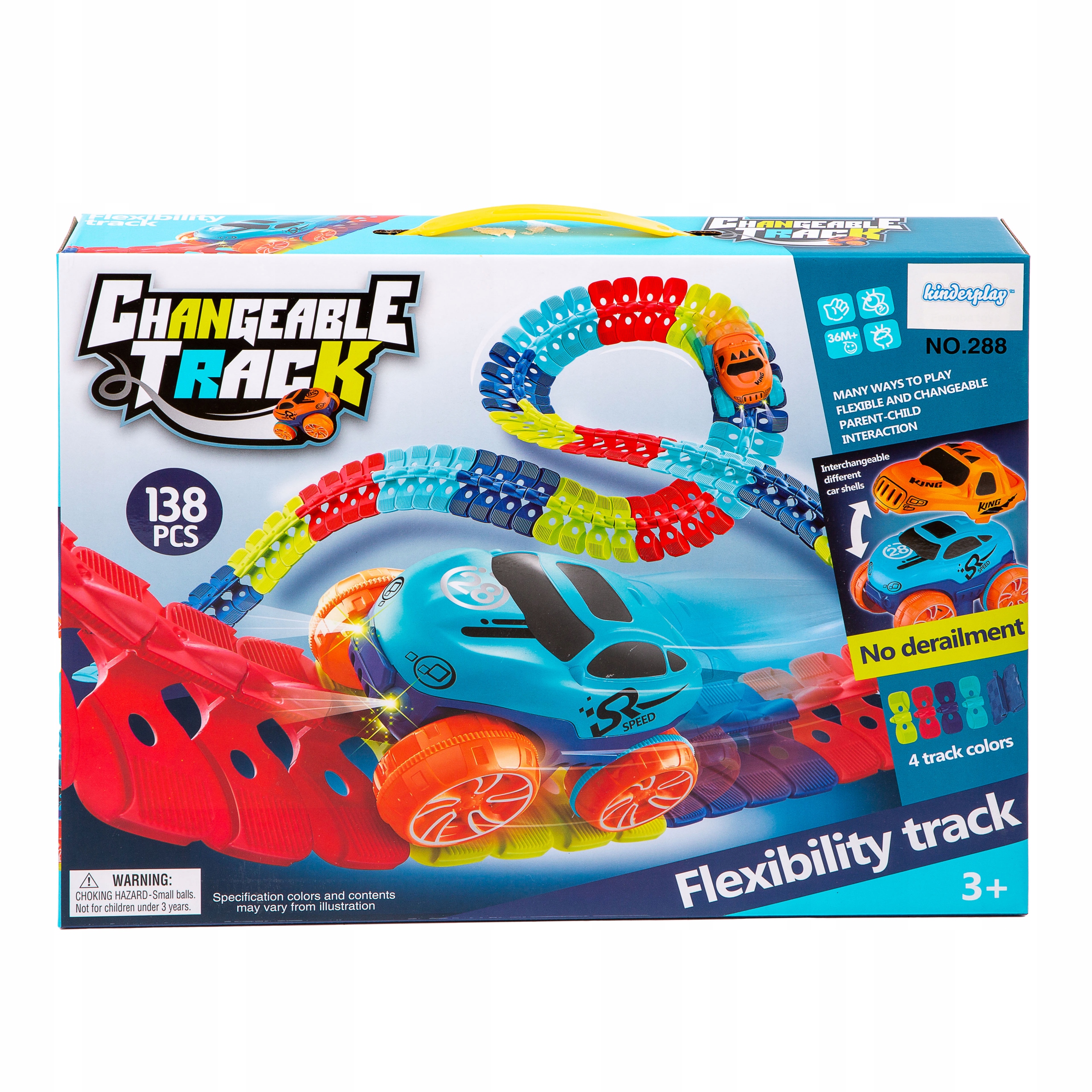 Благодаря гибкой гусенице у вас есть безграничные возможности для создания извилистых и захватывающих треков! Она состоит из 138 красочных элементов дороги, которые можно легко компоновать и изменять по своему усмотрению. Дорожка гибкая и проста в сборке, а машина оснащена светодиодами, светящимися в темноте. Набор обеспечивает развлечение как в одиночку, так и в компании. Создание дорожки зависит только от вашей фантазии!