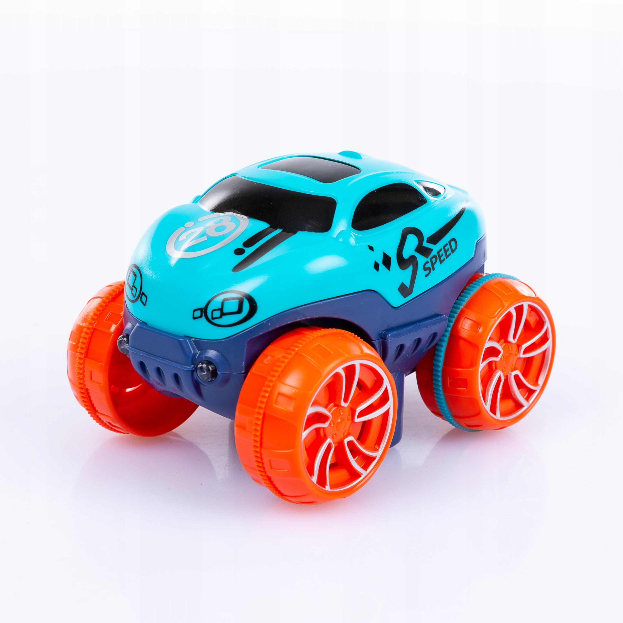 Машина с функцией смены кузова на оранжевый или синий цвет. Благодаря подсвеченным передним фонарям веселье будет еще лучше, когда свет выключен.