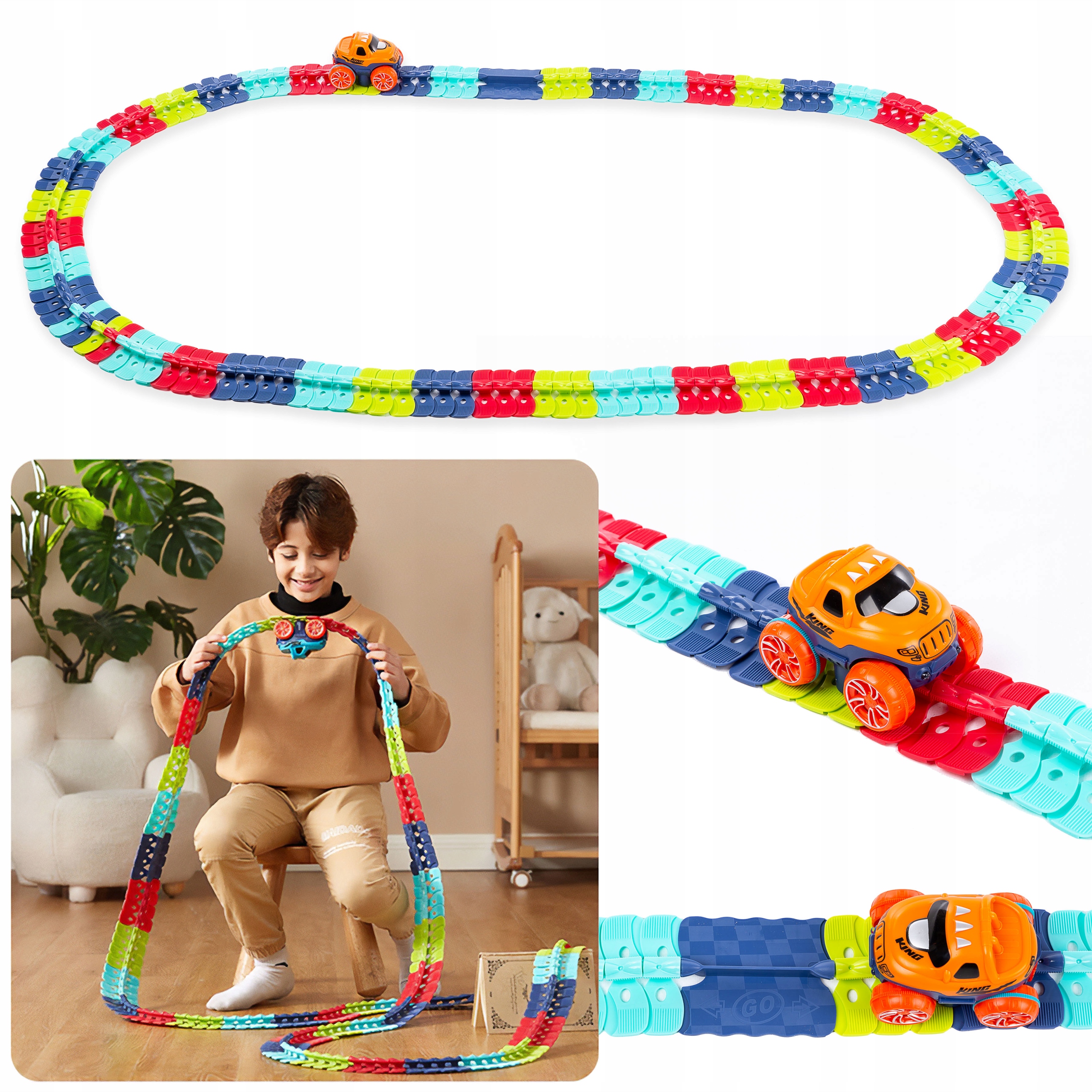 Благодаря инновационному соединителю дорожку можно изгибать и изгибать в любую сторону, что позволяет создавать очень сложные и креативные структуры.