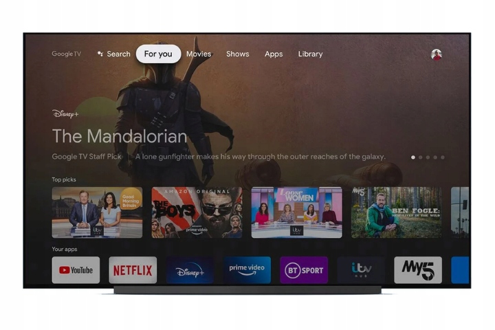 Google TV — это платформа, которая значительно упростит вам использование сервисов и приложений Smart TV для просмотра фильмов и сериалов, а также прослушивания музыки*. Благодаря этому решению вам не придется переключаться между приложениями. Выбирайте то, что вас интересует, и начинайте просмотр. Управление упрощается благодаря входящему в комплект пульту дистанционного управления.
