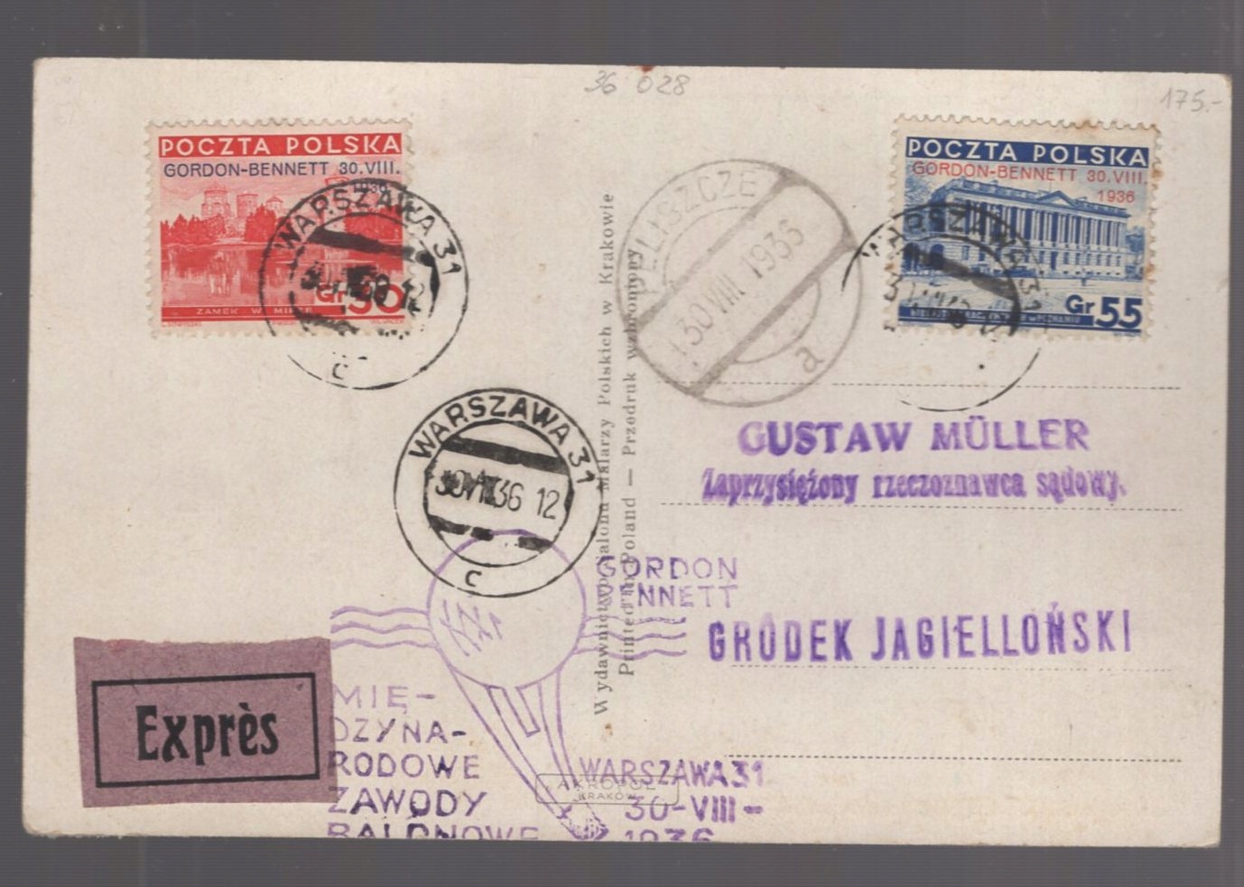 ГОРДОН-БЕННЕТ, 1936 г., Fi. 292- 293 ОТКРЫТКА