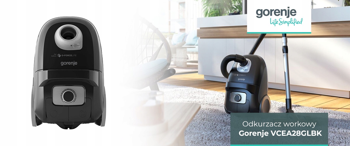 Пылесос с черным мешком Gorenje VCEA28GLBK, оснащенный HEPA-фильтром.