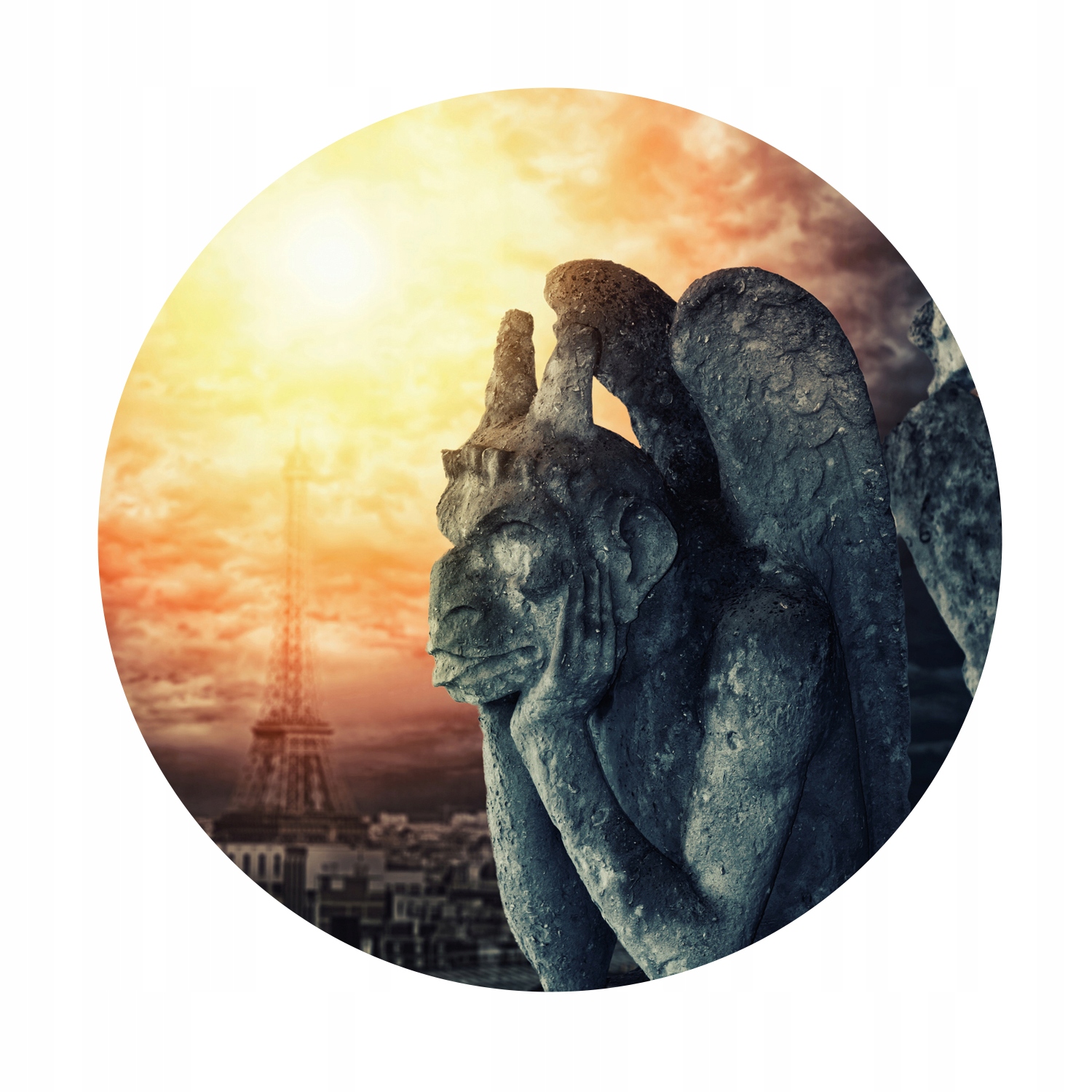 Темы изображений: Горгулья Нотр-Дам Эйфелева башня Парижские здания статуя заката