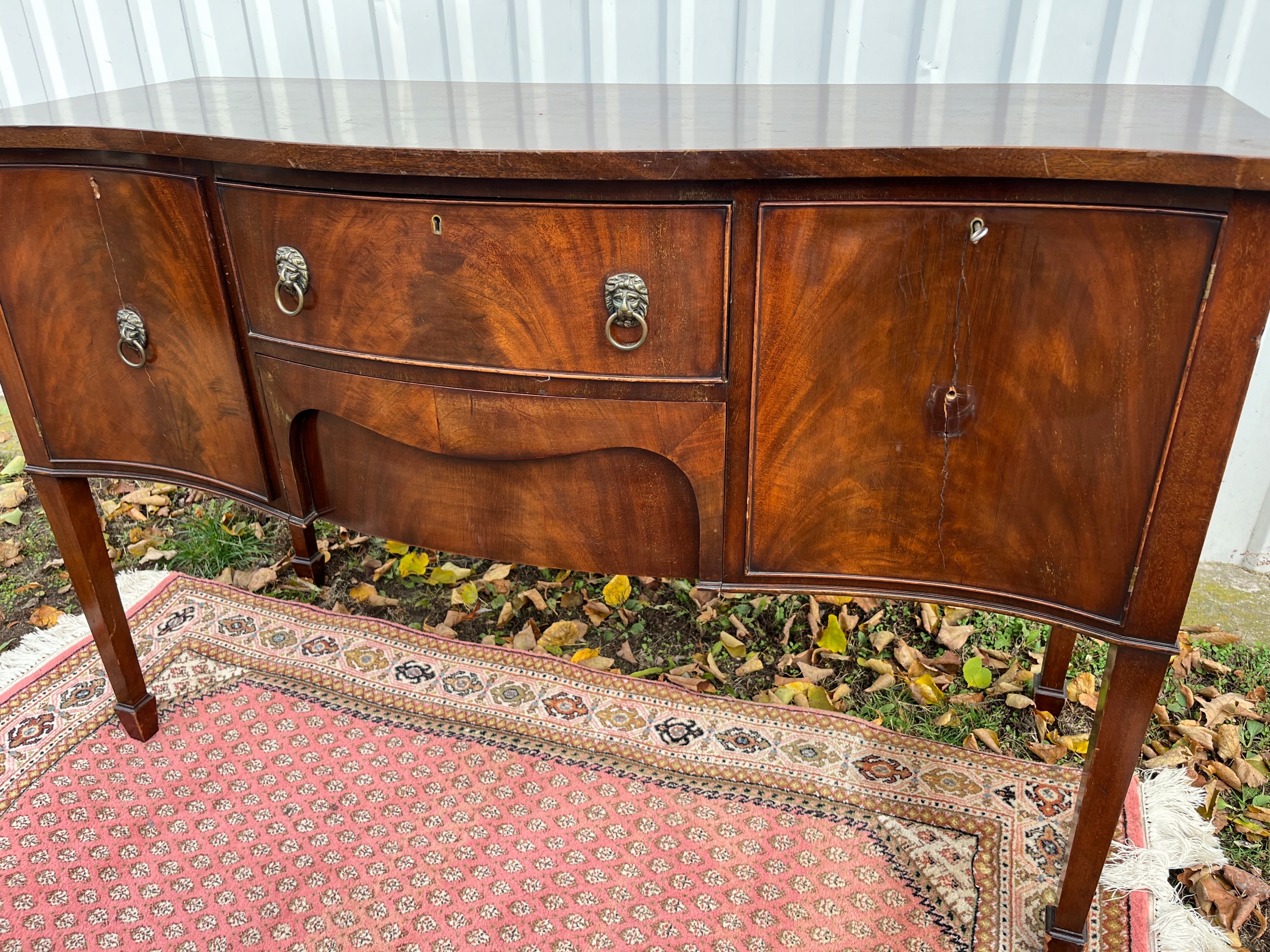 Красивый старинный предмет мебели, видимый на фотографиях начала 19 века. отполирован, изготовлен из орехового дерева, в хорошем состоянии, с небольшими следами использования, царапинами на столешнице и отсутствием одной латунной ручки. размеры 138 х 55 см, высота 88 см.