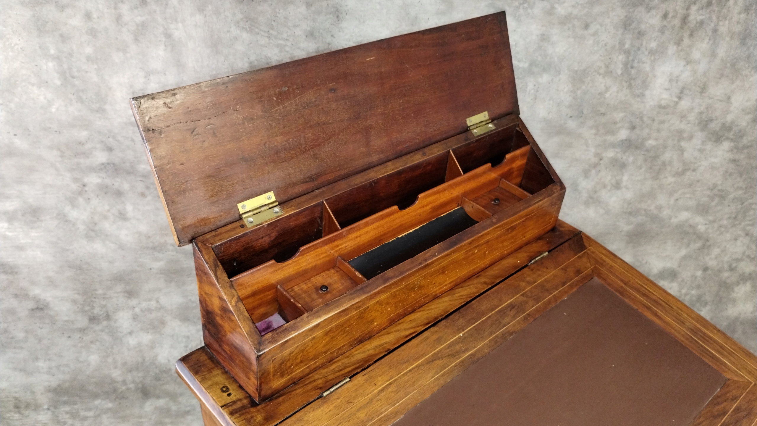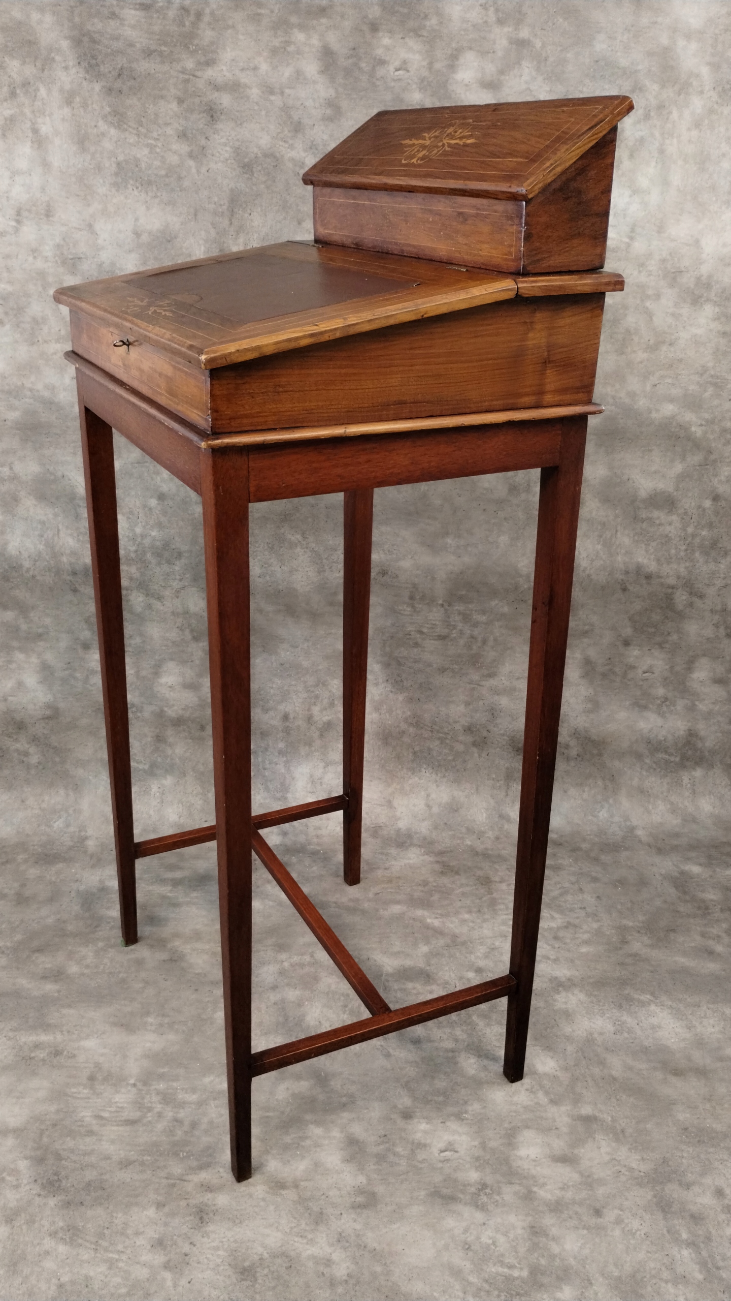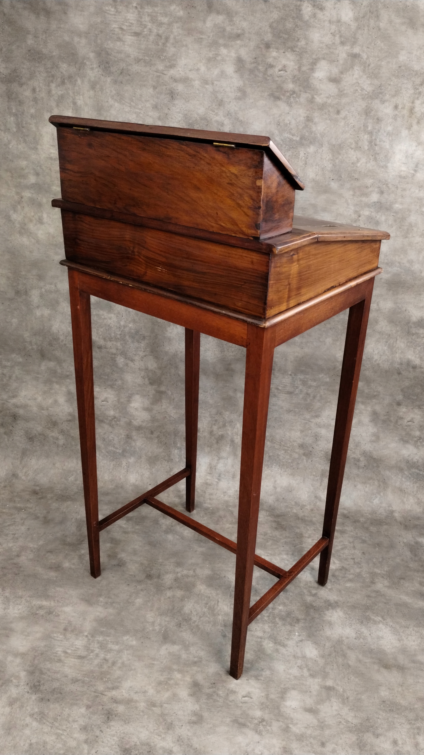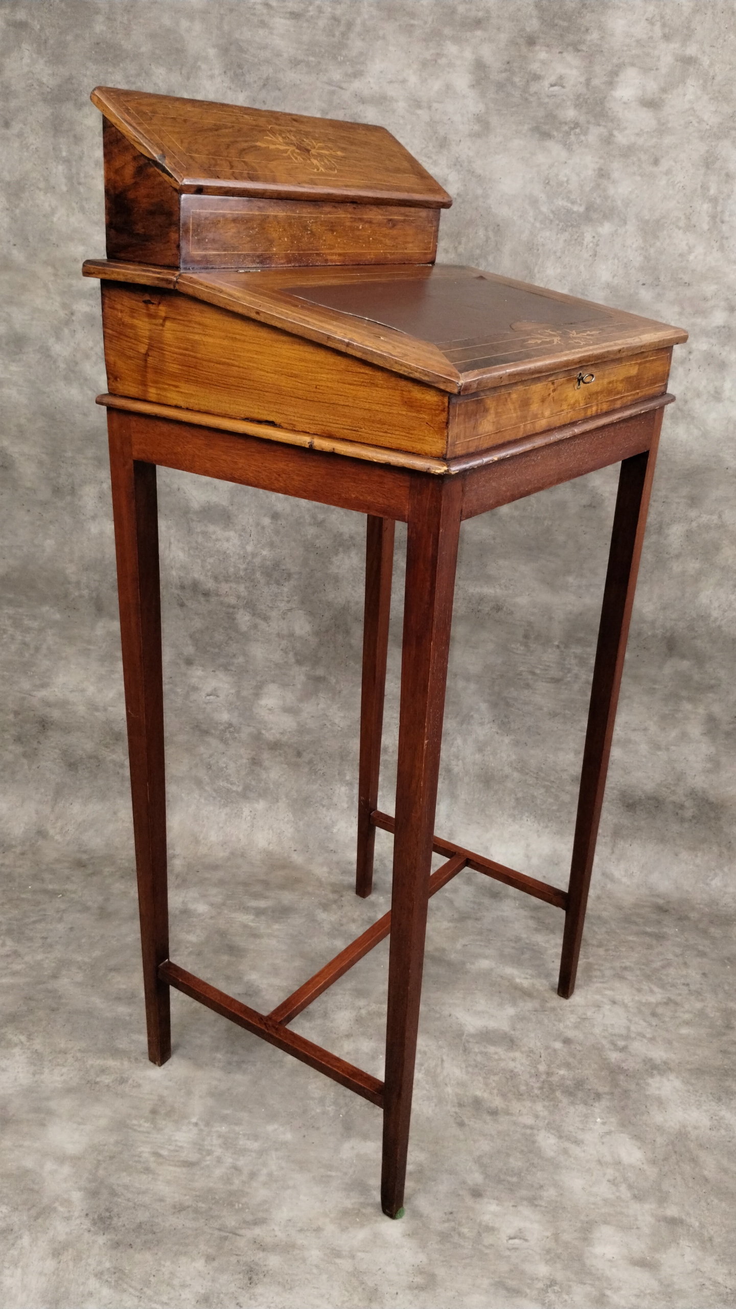 Orzechowy kantorek biedermeier klasycyzm intarsjowany pulpit antyk XIXw.