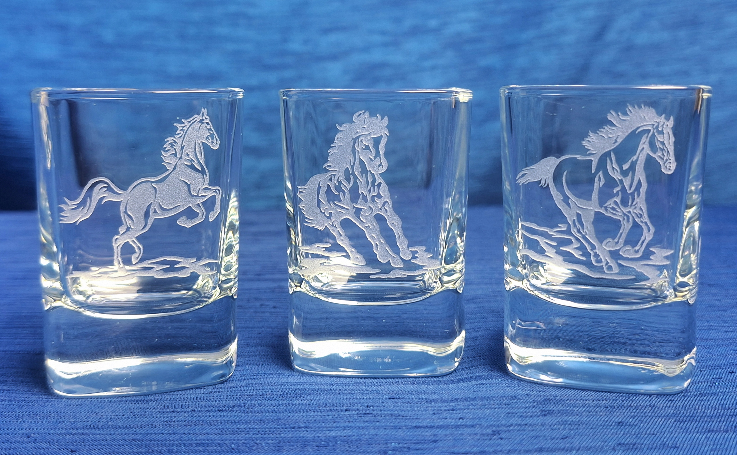 Водка 50 мл очков, украшенные гравюрными узорами лошадей
