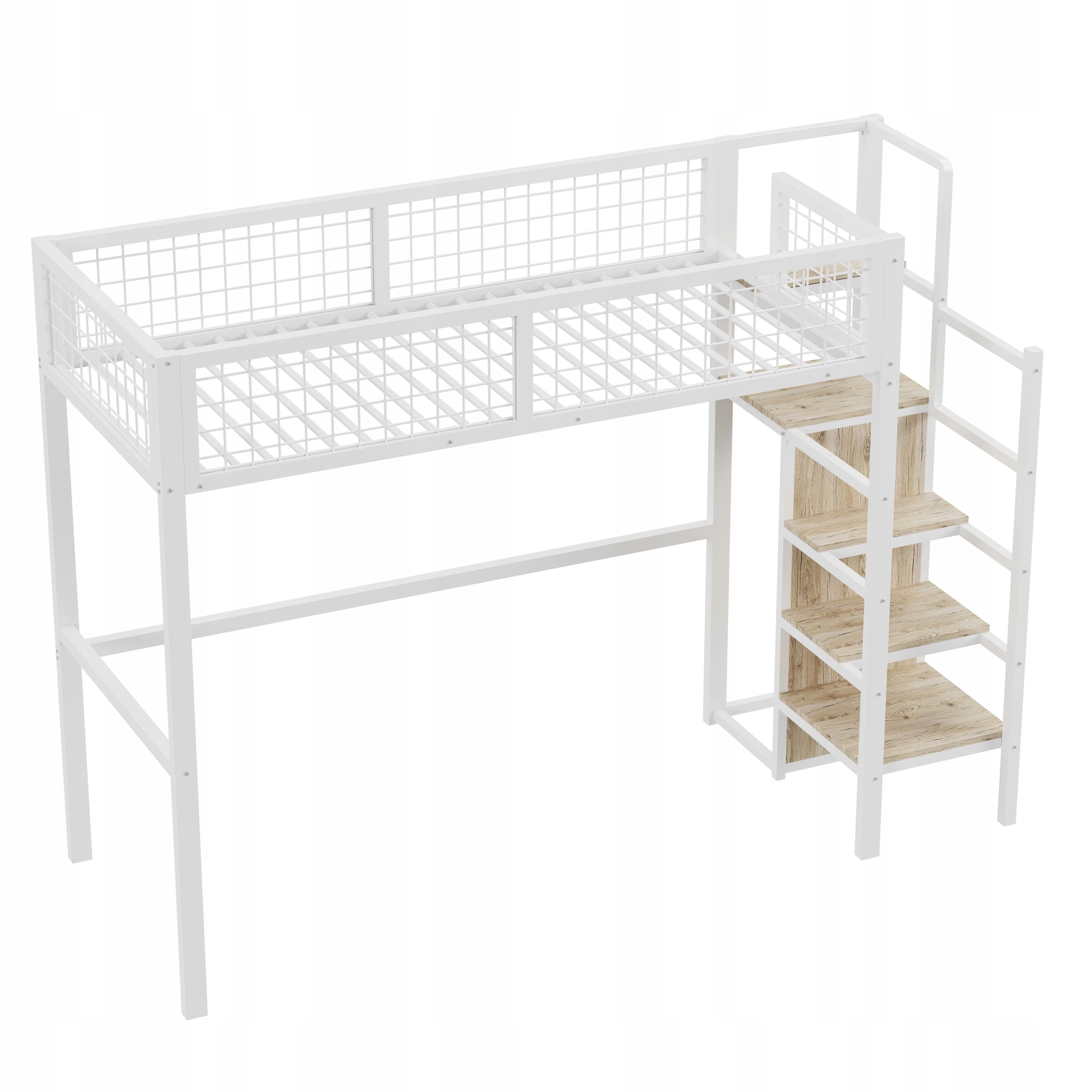 чердак кровать 90*200 с лестницей, детской кровати с железной рамой и полкой хранения, белый гардероб