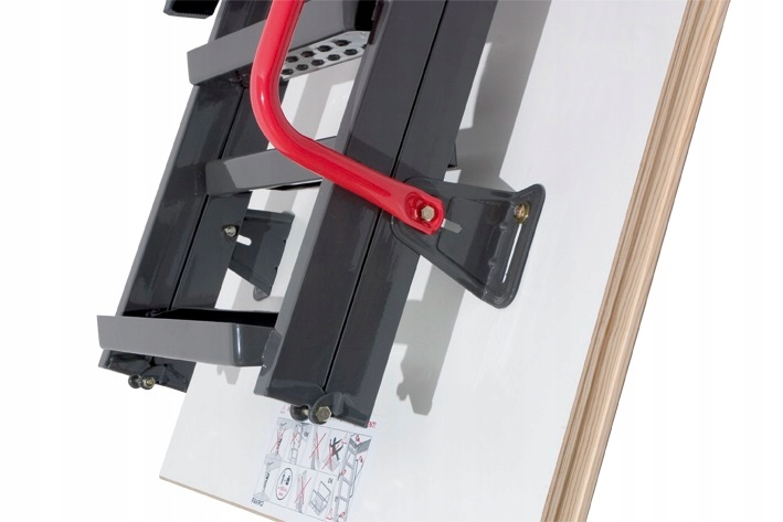 Имеет белый теплоизоляционный люк толщиной 3,6 см, уплотнитель и красный поручень. Поручни крепятся к углам лестницы и облегчают подъем по лестнице.