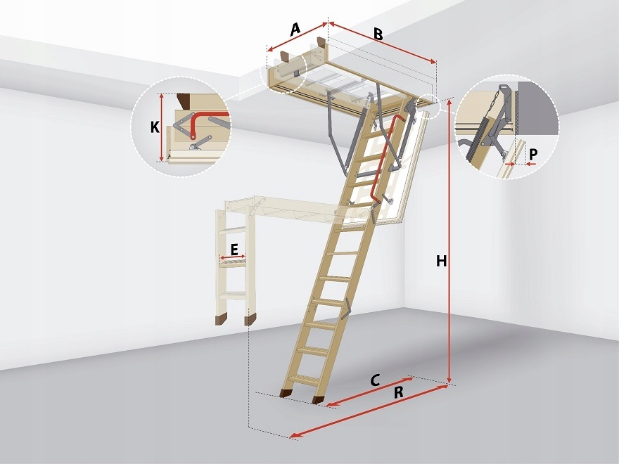 - Кроме того, механизм удерживает люк в полностью открытом положении, предотвращая его автоматическое закрытие при раскладывании и складывании лестницы.