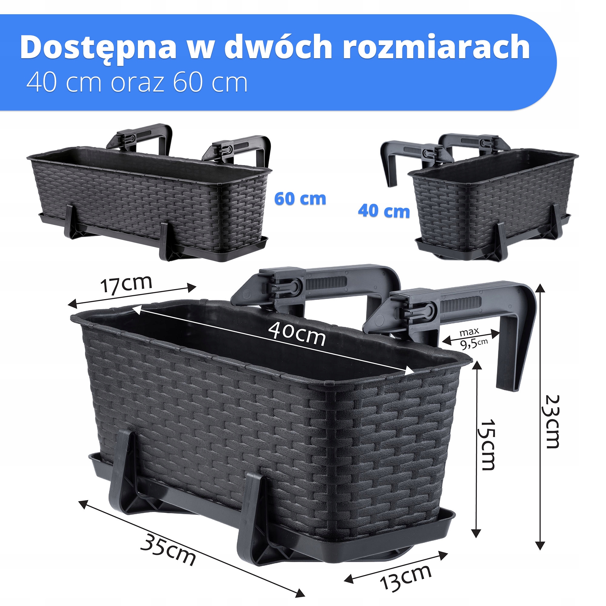ГОРЩИК БАЛКОННА ПІДСТАВКА 40см АНТРАЦИТОВИЙ