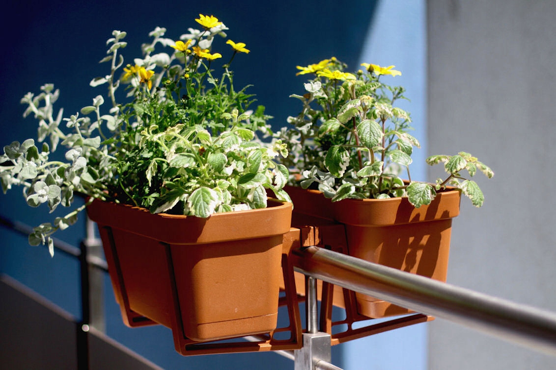 Имеющаяся уникальная двойная ручка позволяет подвешивать ящики с лобелией по обе стороны балюстрады. Имеется возможность регулировки ширины. Его можно приобрести в цветах, соответствующих коробкам.